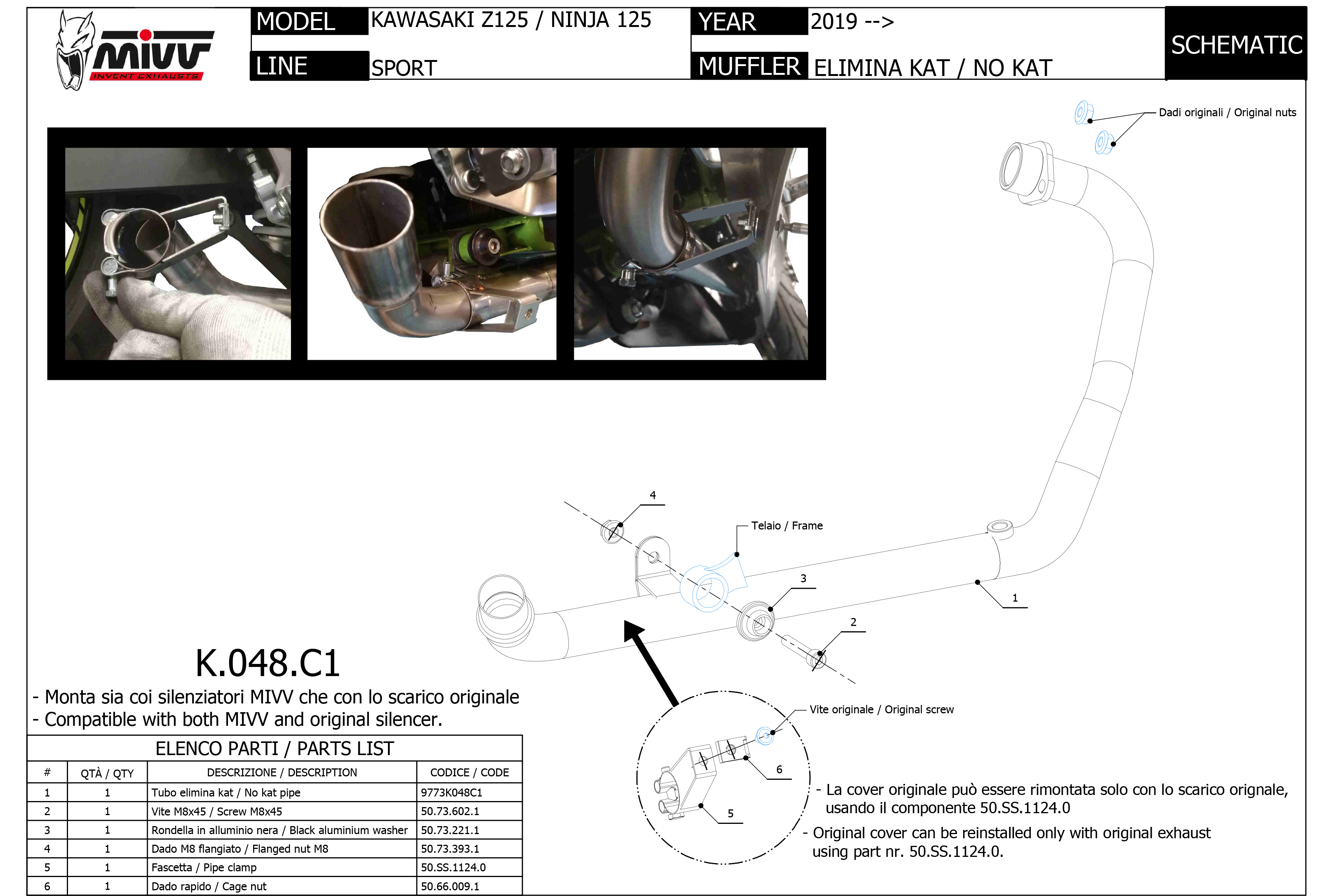 NOTICE: Tubo nokat (monta sia coi silenziatori MIVV che con gli originali) / No-kat pipe (compatible with both MIVV and original silencers)