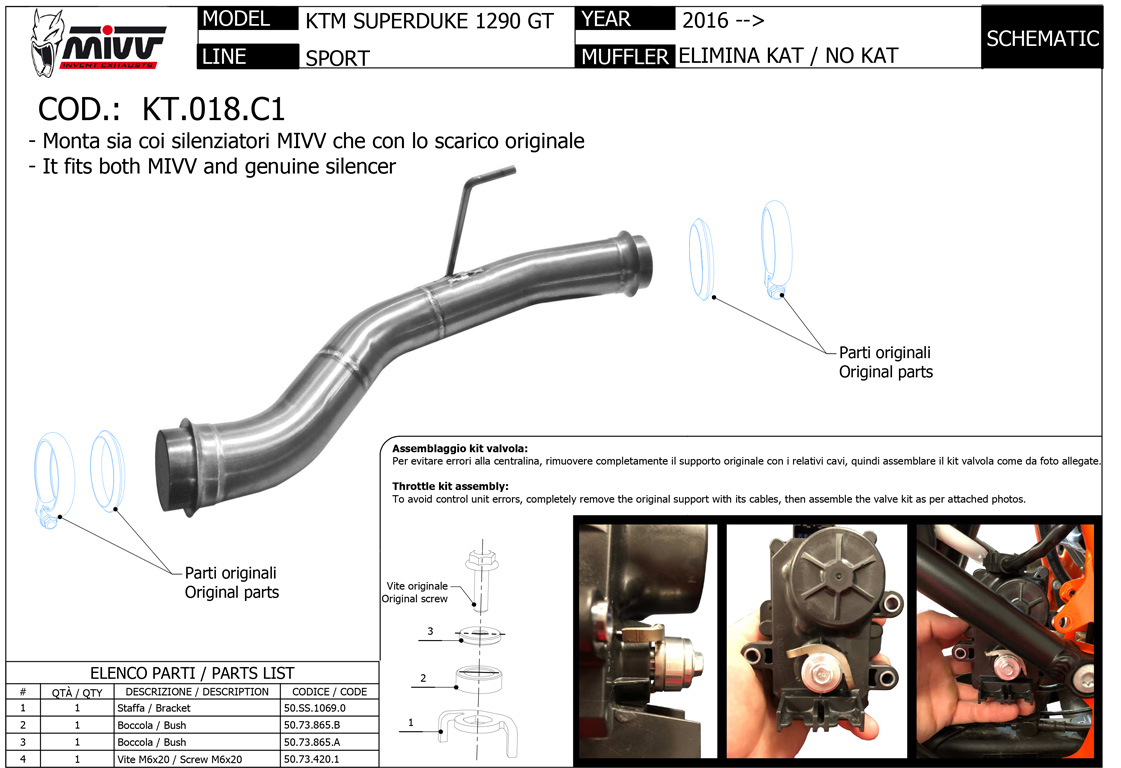 Die optionalen Ersatz-Katalysator- Rohre aus Edelstahl bieten eine Verbesserung der Leistung vor allem in Kombination mit dem Slip-On-Schalldämpfer von Mivv. Die Installation kann jedoch auch mit dem Originalschalldämpfer vorgenommen werden. Dieses Produkt bringt eine eindeutige Verbesserung für Ihr Motorrad, verschönert das Design und verleiht einen einzigartigen Sound.Dieses Produkt verfügt über keine ABE nach geltenden Normen für den Einsatz des Motorrads im Straßenverkehr.