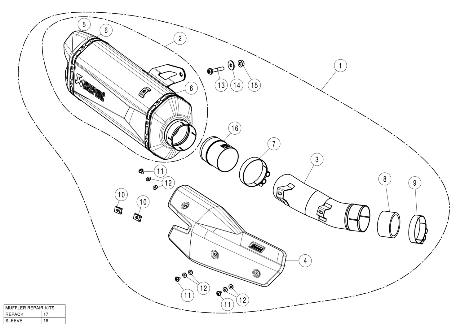 Mit einer hochwertigen , leichten Titan-Schalldämpfer-Außenhülse über einem Edelstahl-Innenrohr verfügt dieses Produkt über ein Edelstahl-Gliederrohr und eine Endkappe aus Kohlefaser mit einem Hitzeschild für den Insassen- und Getriebeschutz. Der Schalldämpfer ist mit einem monochromen Akrapovič-Aufkleber versehen. Die Verwendung von rennerprobten Materialien verleiht dem Auspuff eine sportliche Optik und der Dual-Flow-Schalldämpfer trägt zu seinem einzigartigen Erscheinungsbild bei. Das Gewicht wird gegenüber dem Standardlagersystem um 1,5 kg (27,8 %) reduziert.