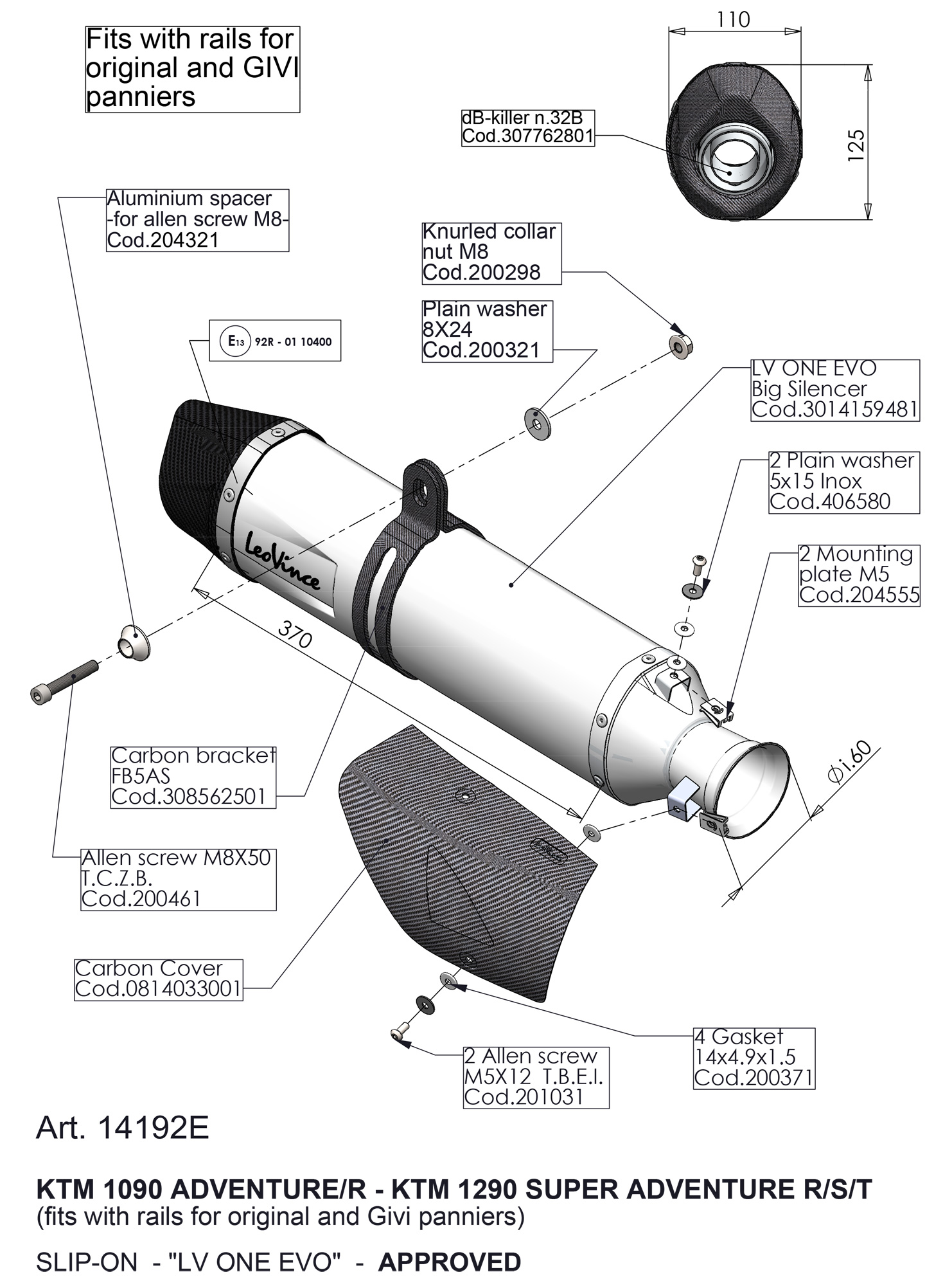 14192E - Auspufftopf LeoVince LV ONE EVO Edelstahl KTM 1090 ADVENTURE/R (2017)