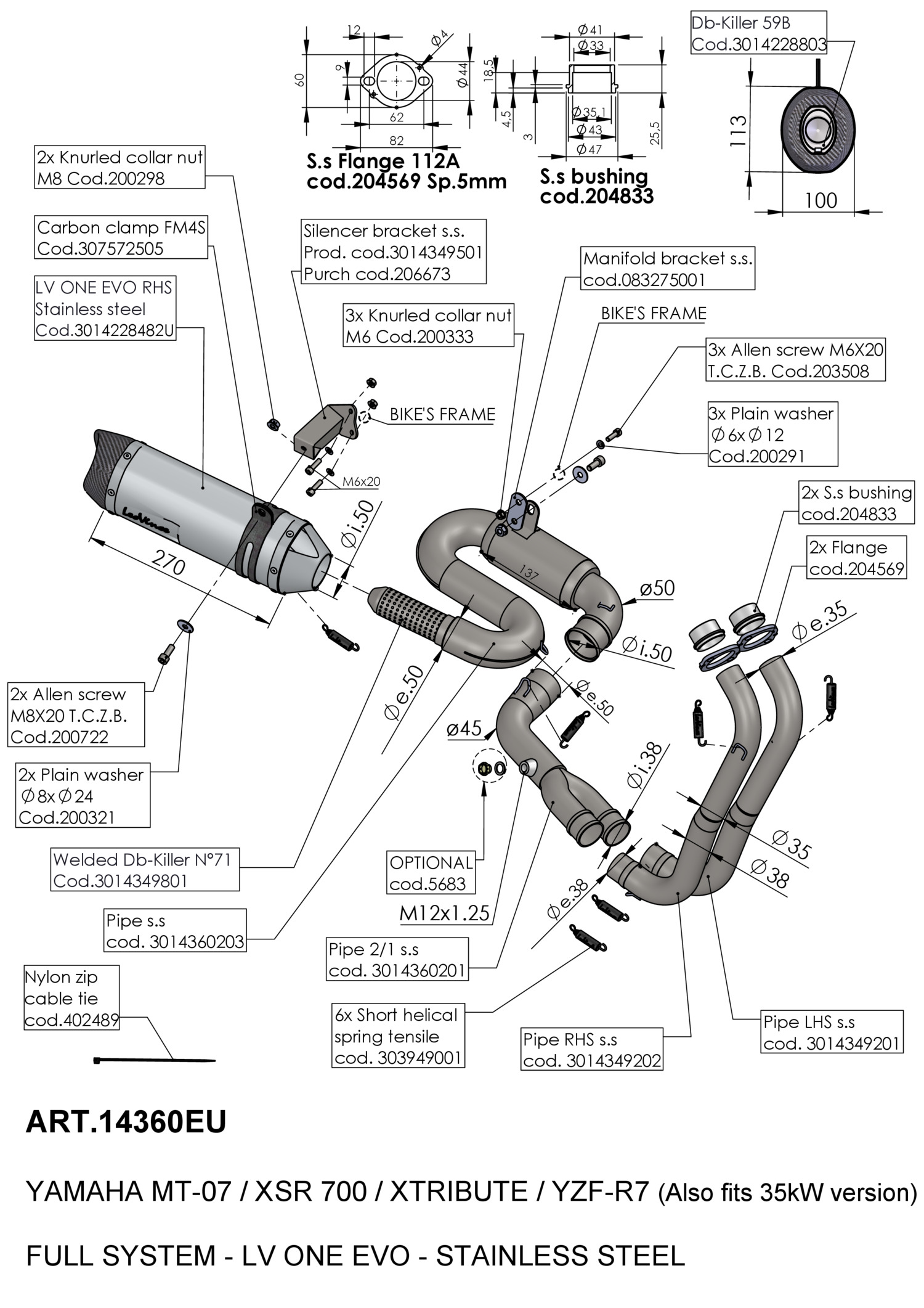 14360EU - Komplette Auspuffanlage LeoVince LV ONE EVO YAMAHA MT-07 (21-23)
