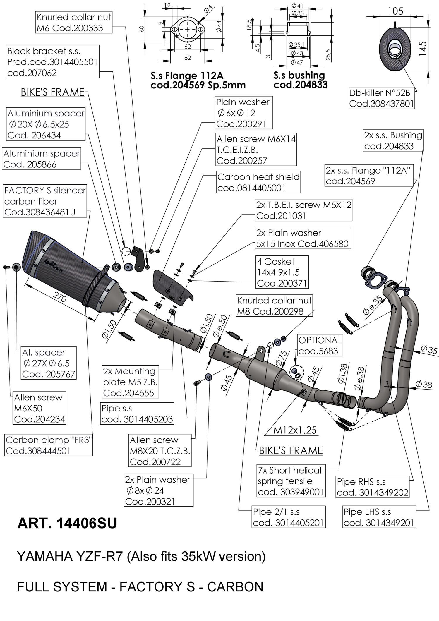 14406SU - Auspuffanlage LeoVince FACTORY S Kohlenstoff YAMAHA YZF-R7 (21-23)