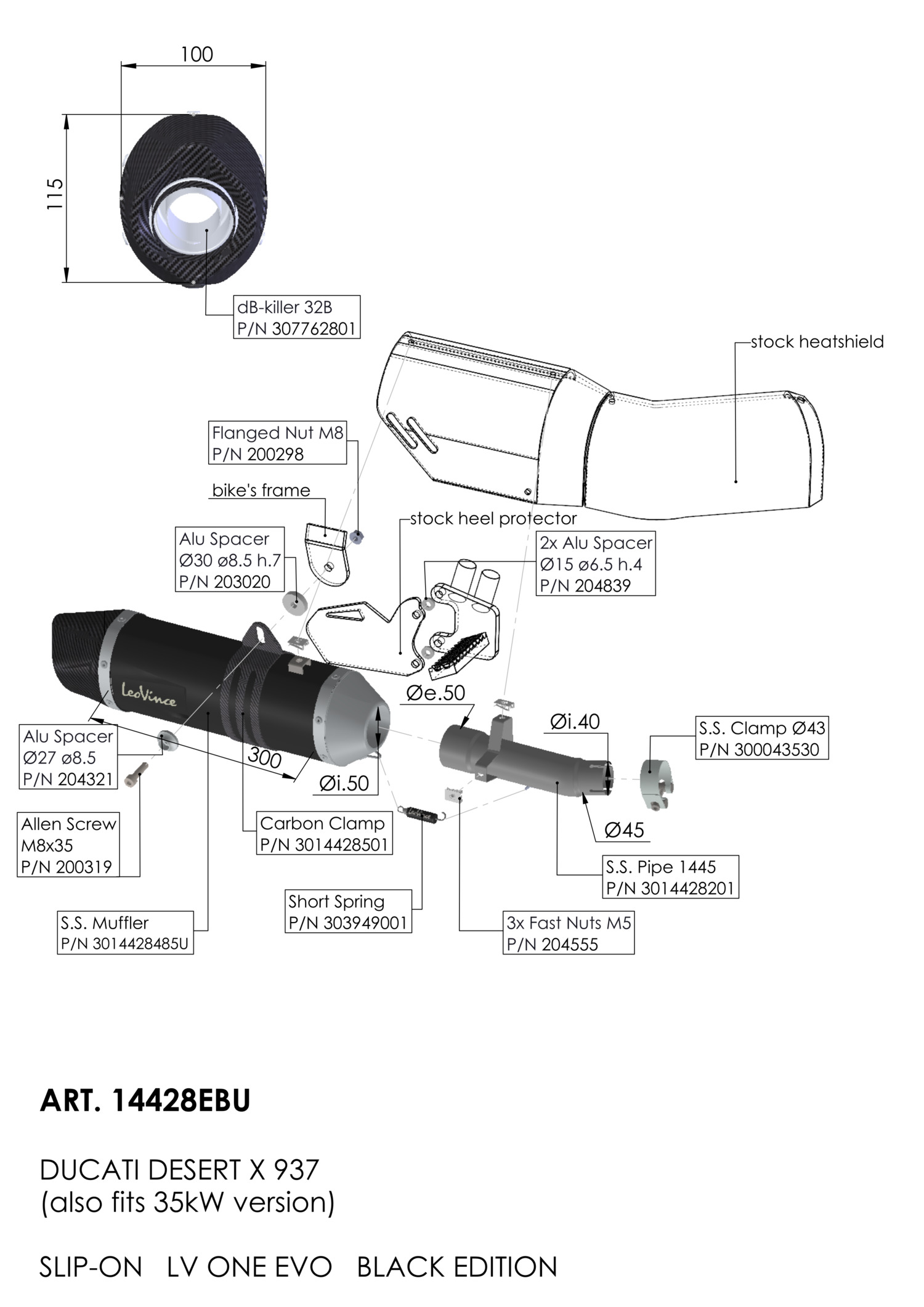 14428EBU - Auspufftopf LeoVince LV ONE EVO BLACK DUCATI DESERTX (22-23)