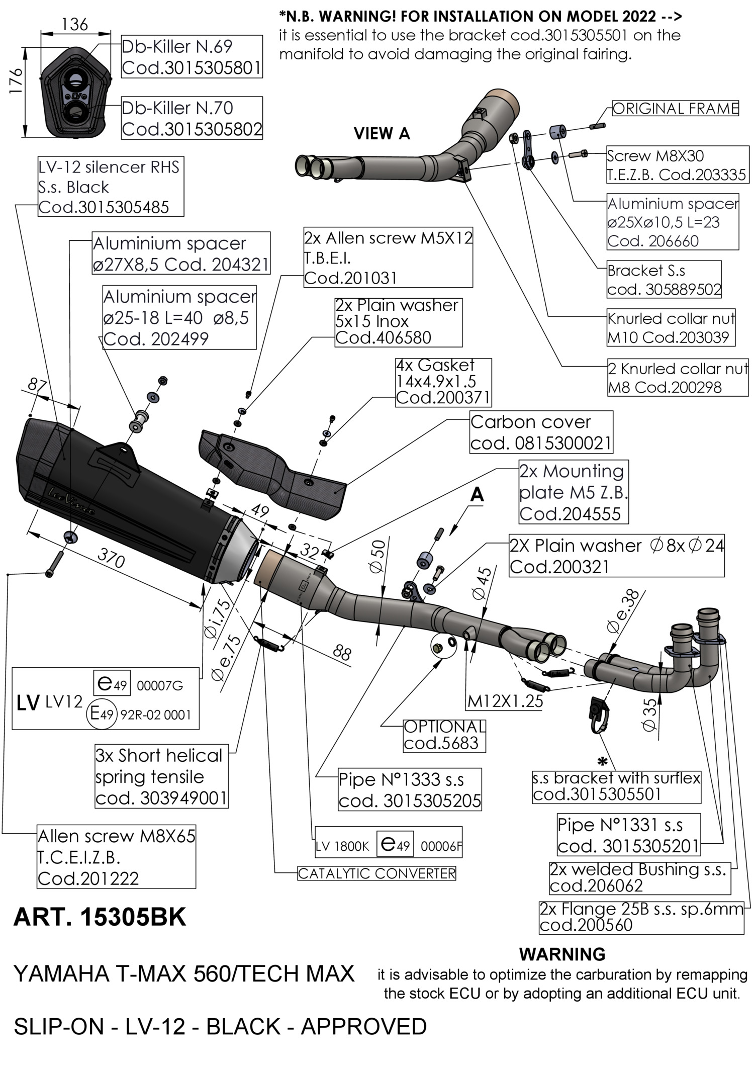15305BK - Auspuffanlage LeoVince LV-12 Schwarz YAMAHA T-MAX 560/TECH MAX (20-24)