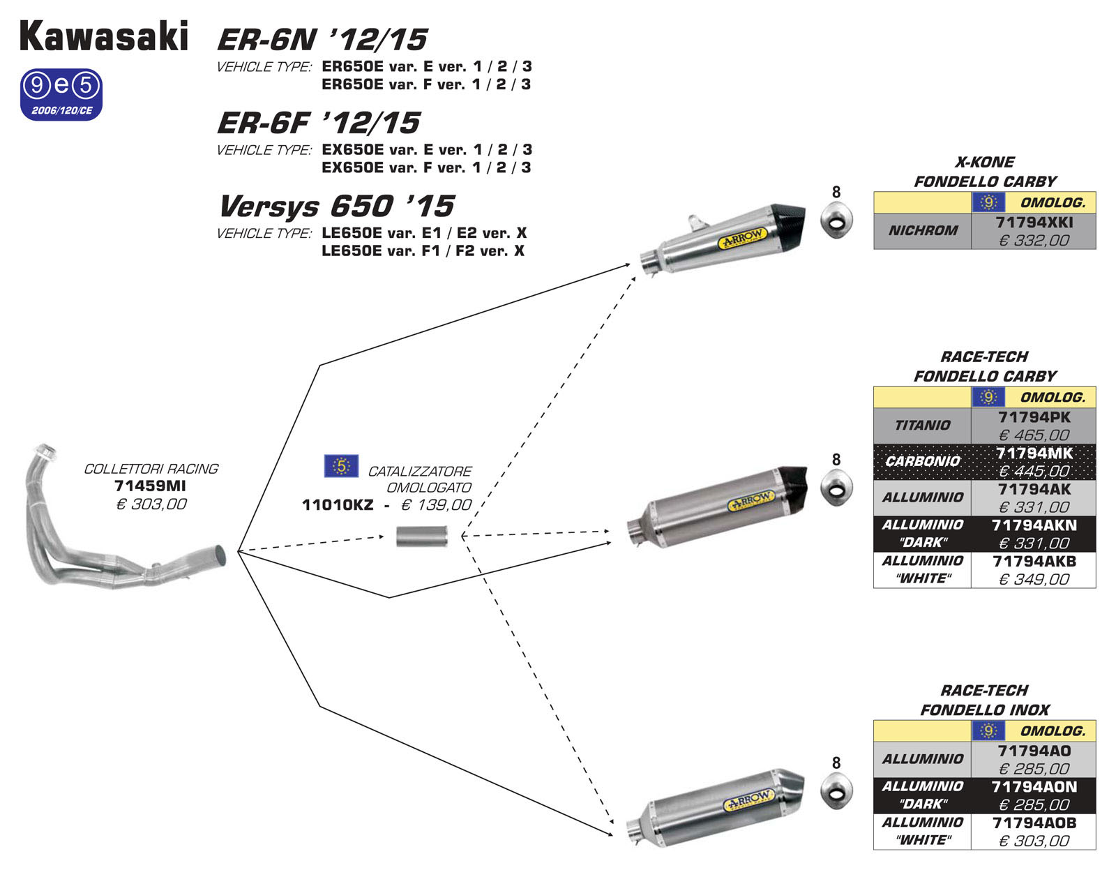 Auspufftopf Arrow X-Kone Nichrom Fondelo Carbonio genehmigt Kawasaki Versys 650 '15