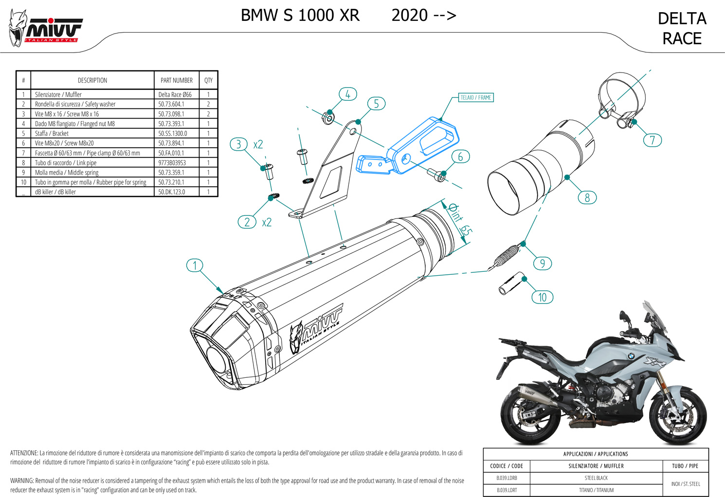 B.039.LDRB - Auspufftopf MIVV DELTA RACE Schwarzer BMW S 1000 XR (20-22)