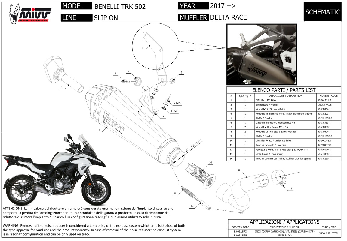 E.003.LDRX - Auspufftopf Mivv DELTA RACE Edelstahl BENELLI TRK 502 (17>)