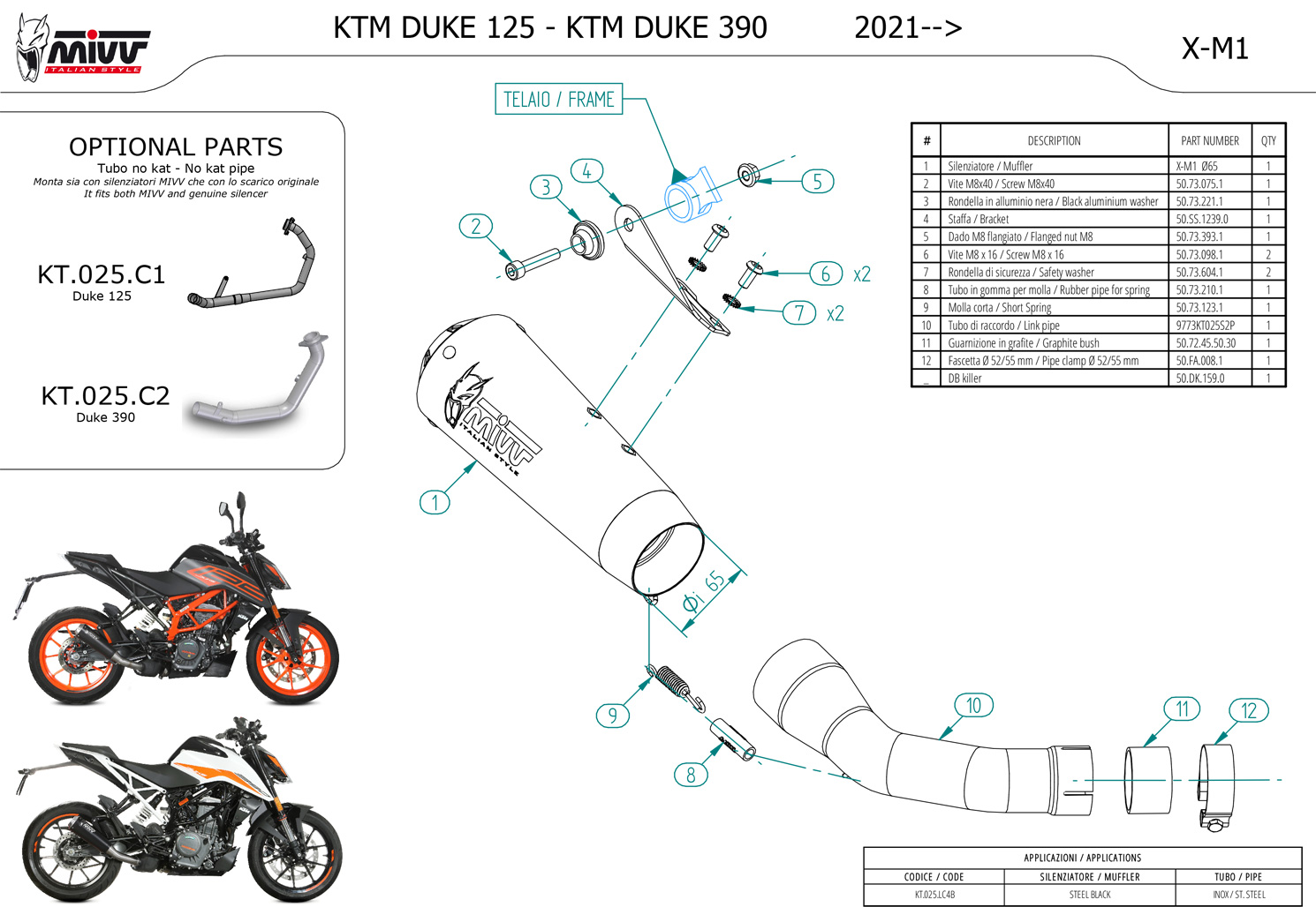 KT.025.LC4B - Auspufftopf MIVV X-M1 Schwarzer KTM 125/390 DUKE (21-22)
