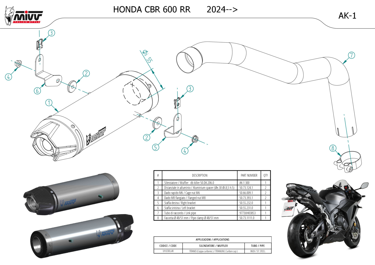UH.038.L4K - Auspufftopf Mivv AK-1 Titan HONDA CBR 600 RR (24-25)