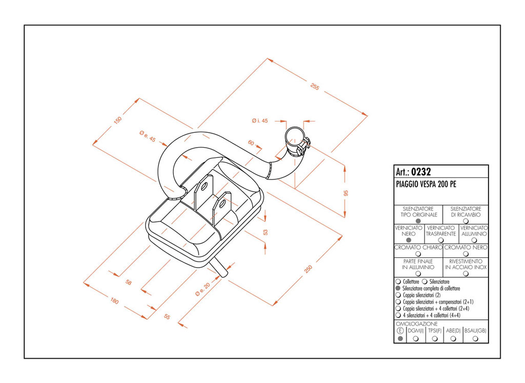 0232 - Muffler Leovince Sito 2-STROKE VESPA 200 PE