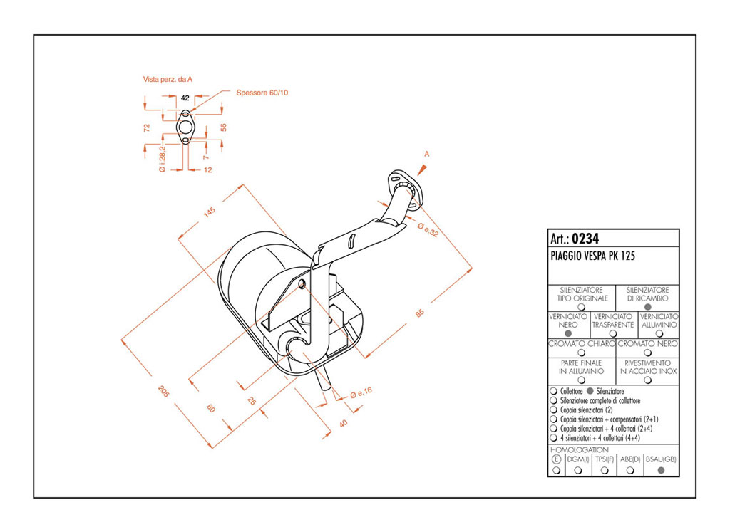 0234 - Muffler Leovince Sito 2-STROKE VESPA PK 125