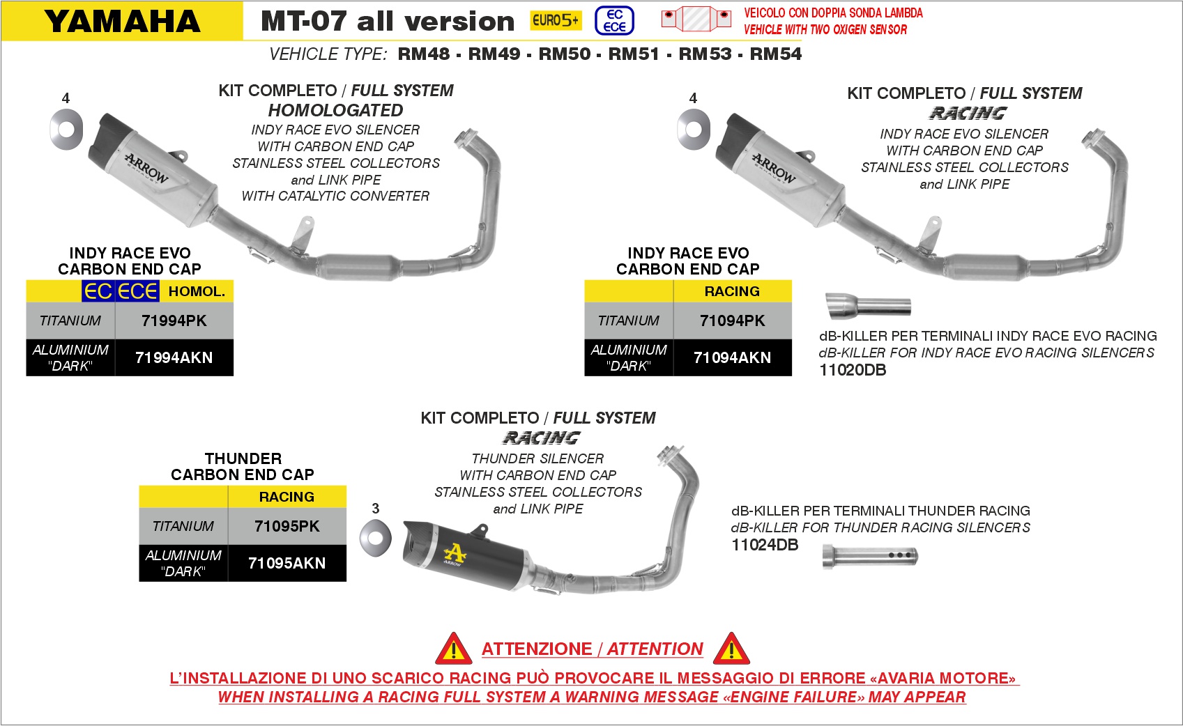 11024DB - Exhaust DB Killer Arrow Thunder Yamaha MT-07 (25-)