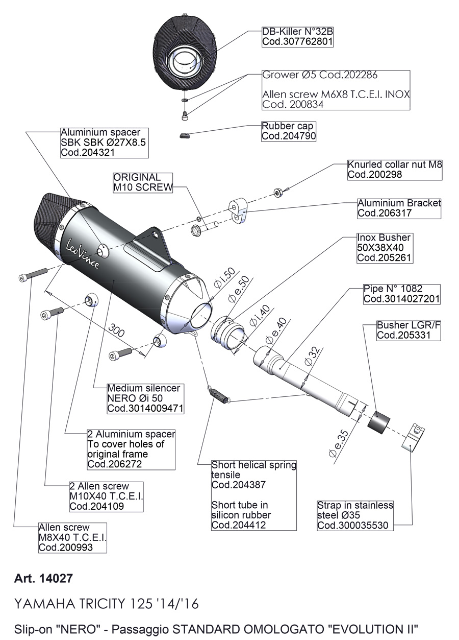 14027 - Exhaust Muffler LeoVince NERO S. Steel Yamaha TRICITY 125 (2014-2016)