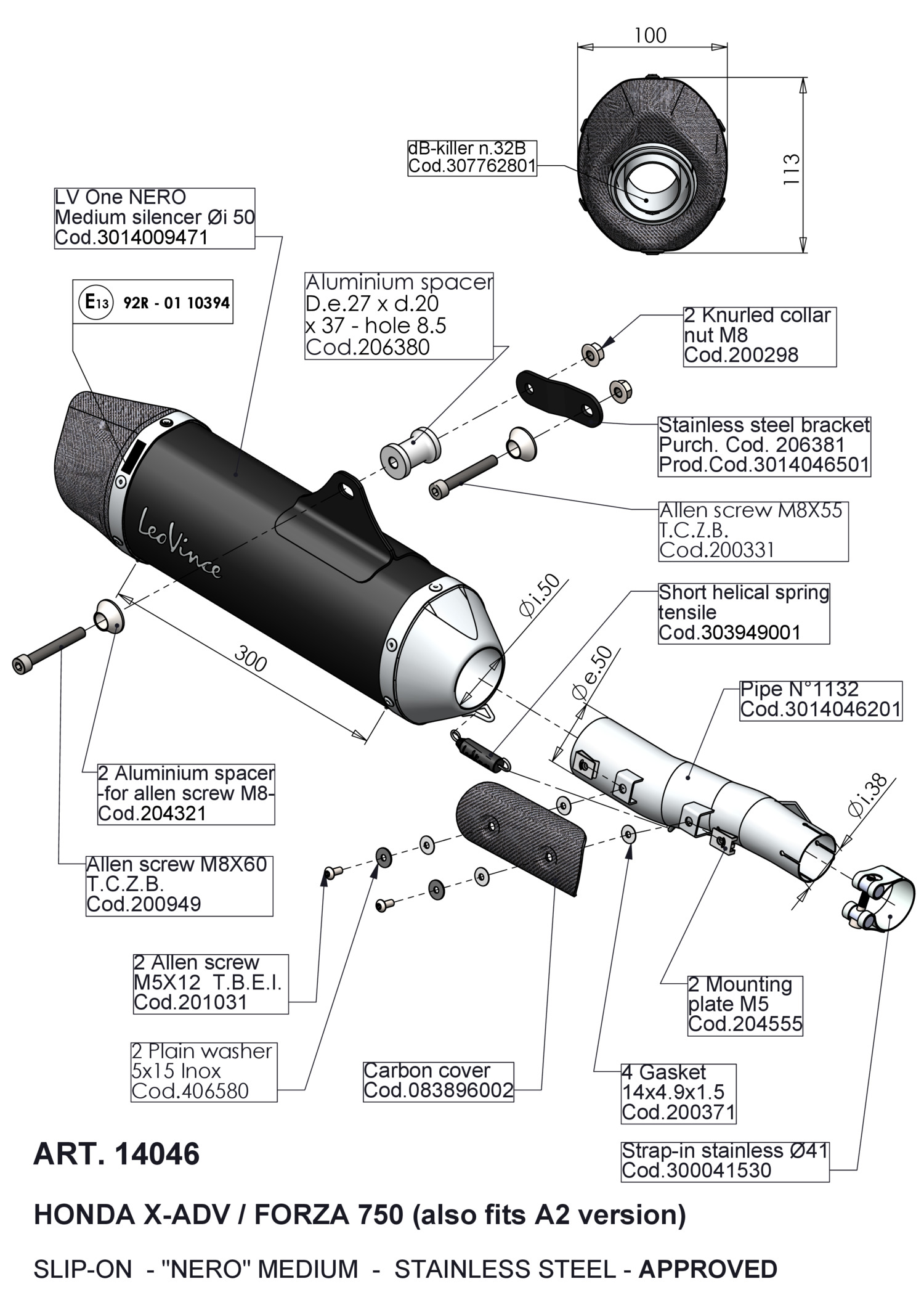 14046 - Exhaust muffler LeoVince NERO Stainless steel HONDA X-ADV (17-23)