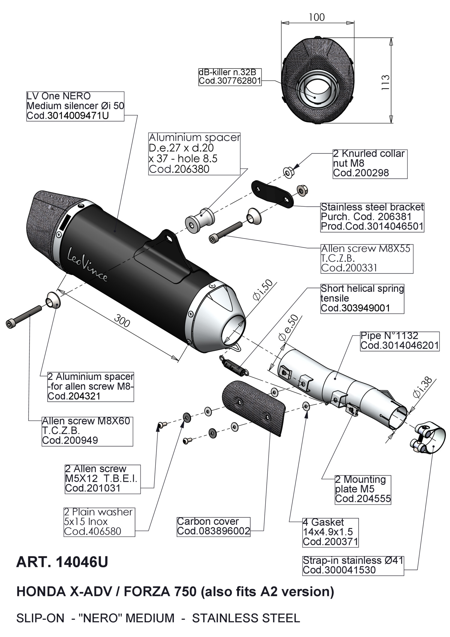 14046U - Exhaust muffler LeoVince NERO Stainless steel HONDA X-ADV (17-23)