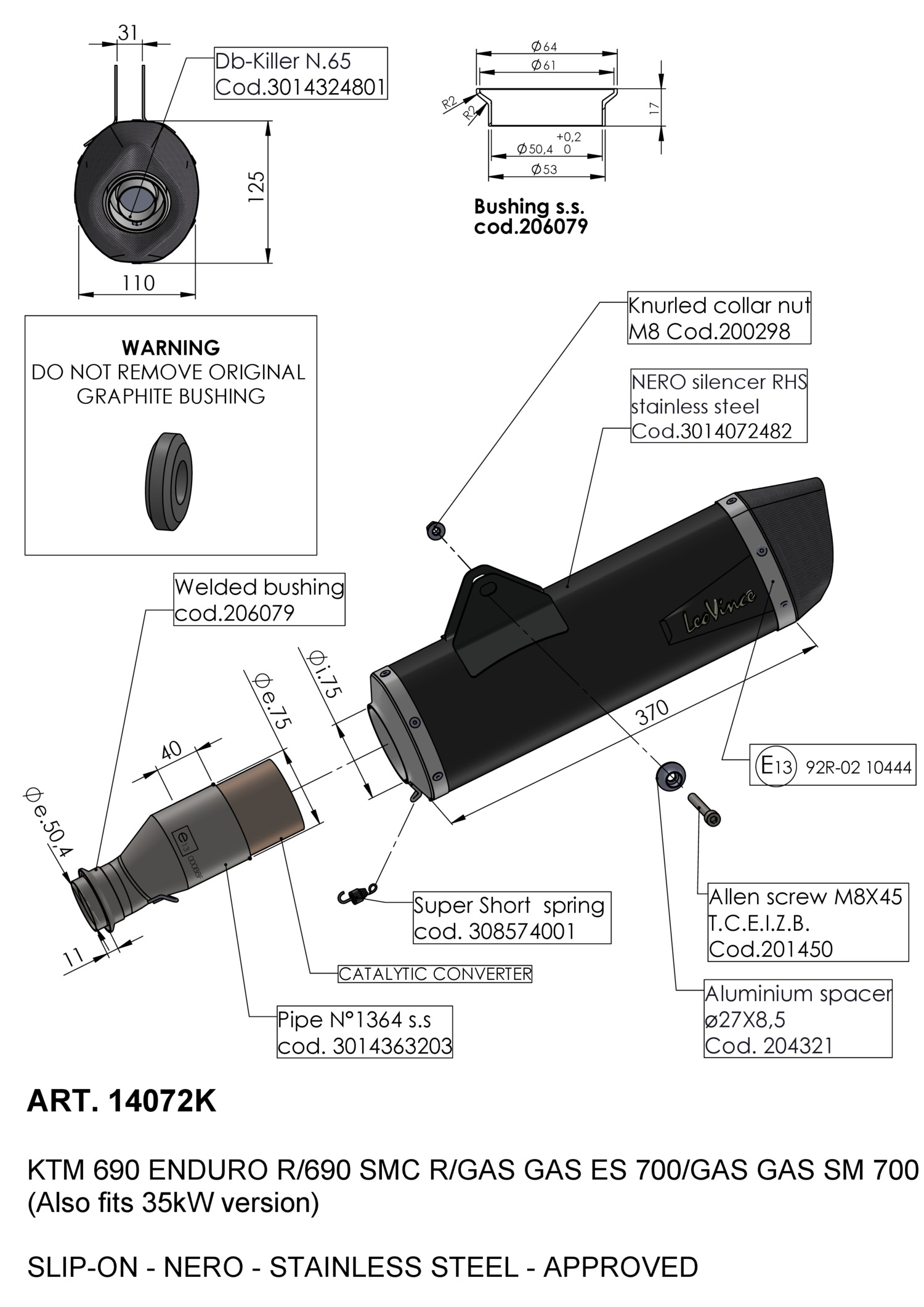- Street legal product. Complies with ECE-R92 and EU 134/2014 directives on noise and polluting emissions.