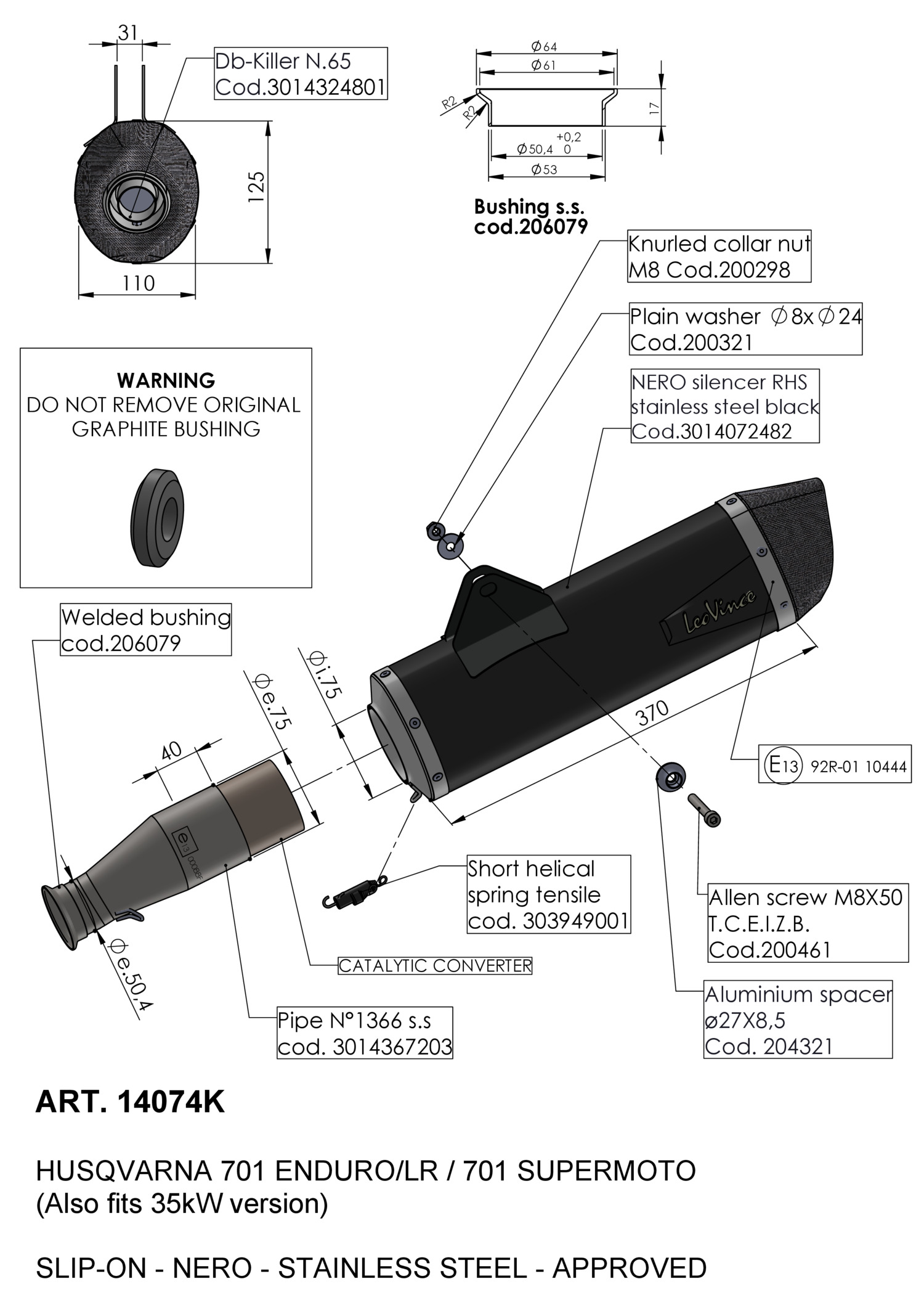 - Street legal product. Complies with ECE-R92 and EU 134/2014 directives on noise and polluting emissions.