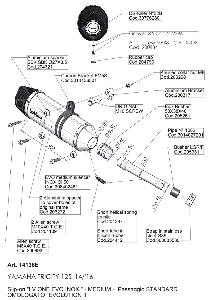 14136E - Exhaust Muffler LeoVince LV ONE EVO S. Steel Yamaha TRICITY 125 (14-16)