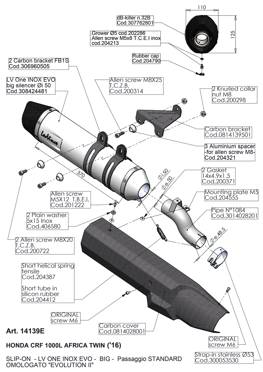 14139E - Exhaust Muffler LeoVince LV ONE EVO S. Steel Honda CRF1000L AFRICA TWIN