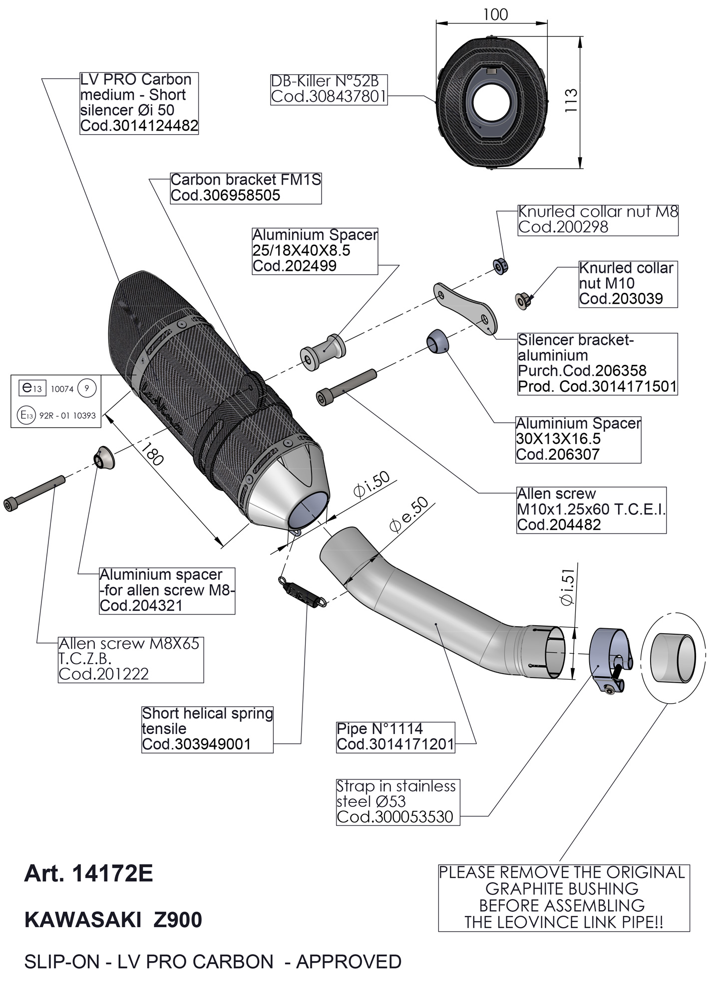 14172E - Exhaust Muffler LeoVince LV PRO Carbon KAWASAKI Z 900 (2017)