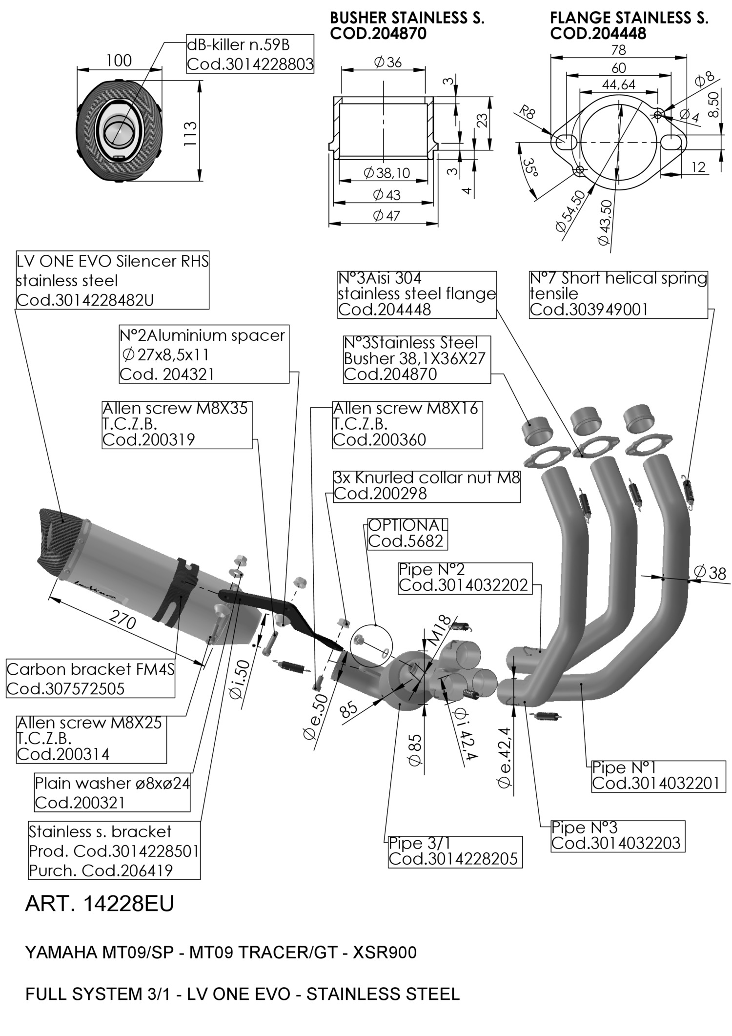 14228EU - Full exhaust system LeoVince LV ONE EVO SS YAMAHA MT-09 SP (18-20)