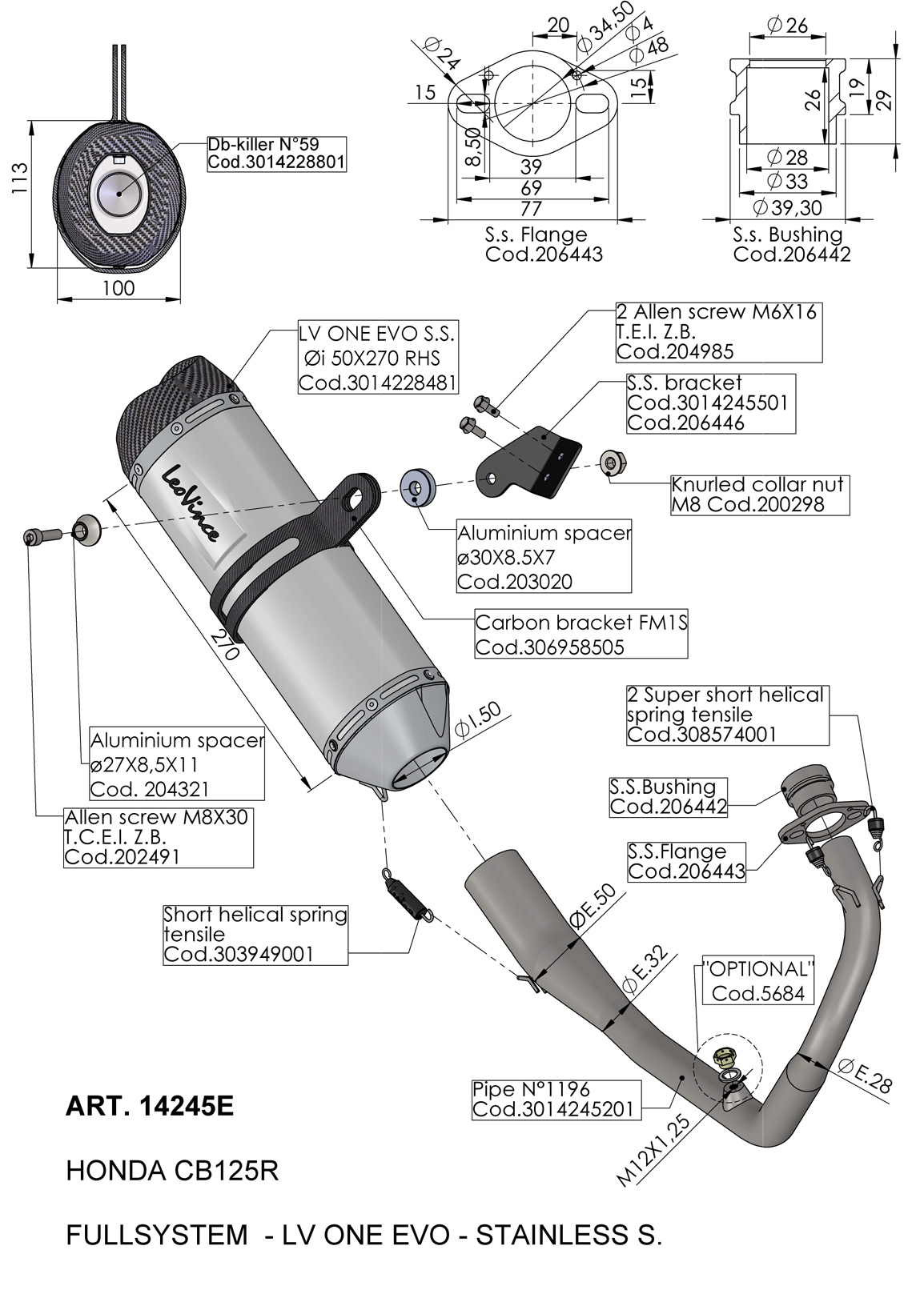 14245E - Full Exhaust LeoVince LV ONE EVO Stainless Steel HONDA CB 125 R (18-19)
