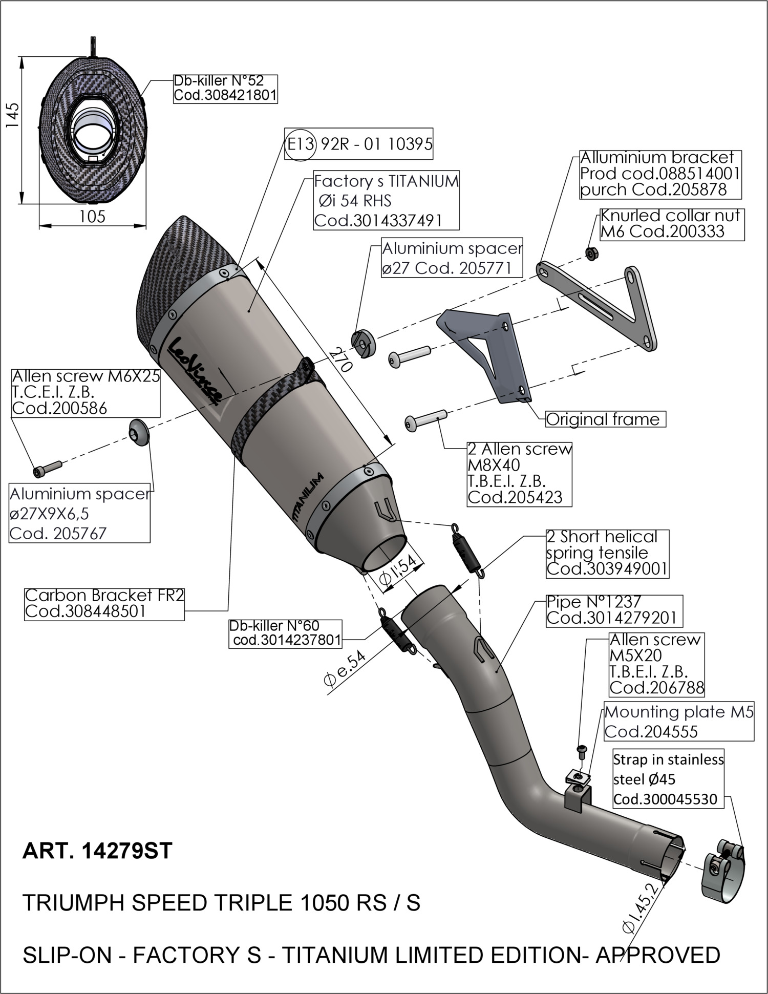 14279ST - Exhaust muffler LeoVince FACTORY S Titanium TRIUMPH SPEED TRIPLE 1050