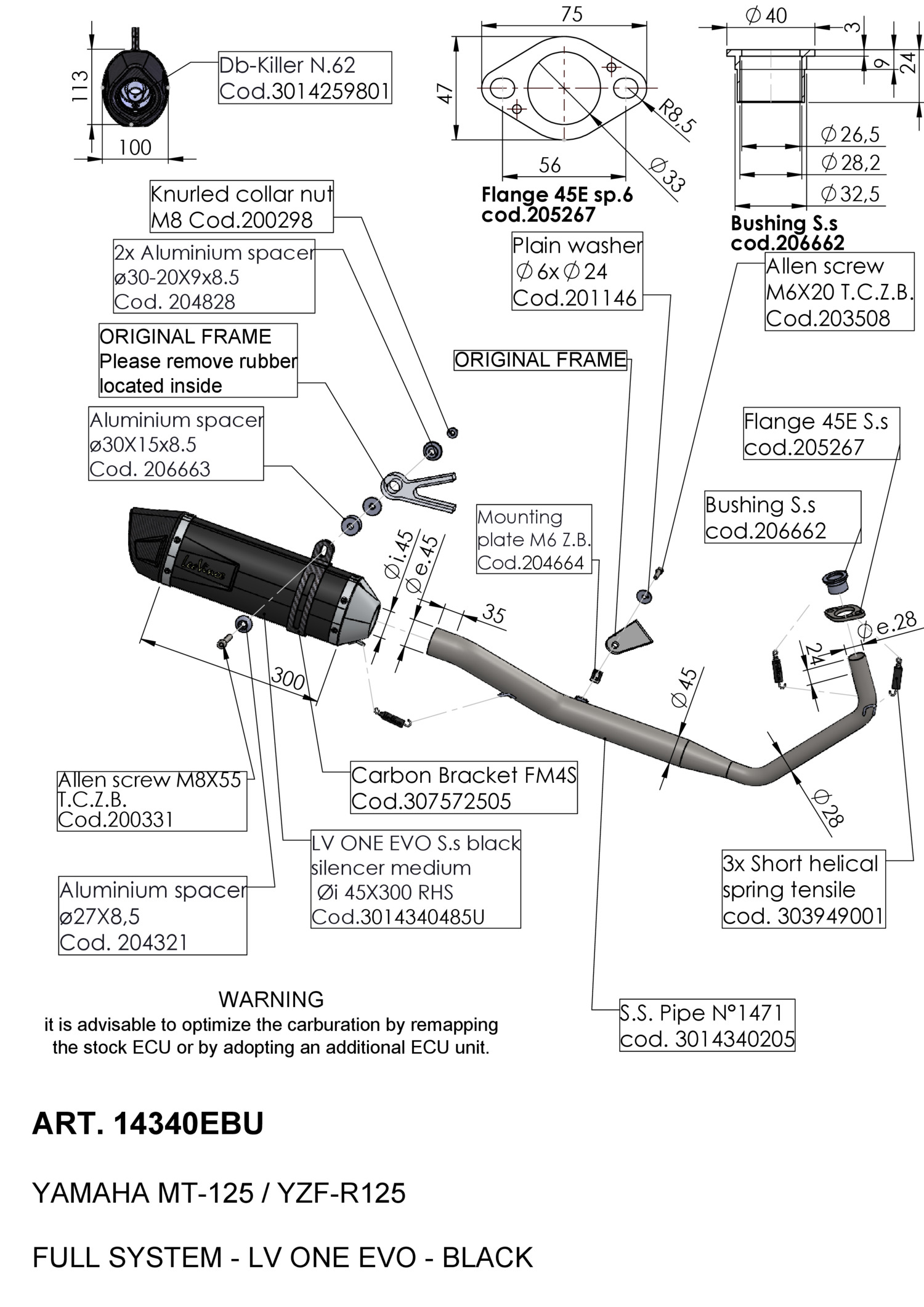14340EBU - Full exhaust system LeoVince LV ONE EVO BLACK YAMAHA MT-125 2020