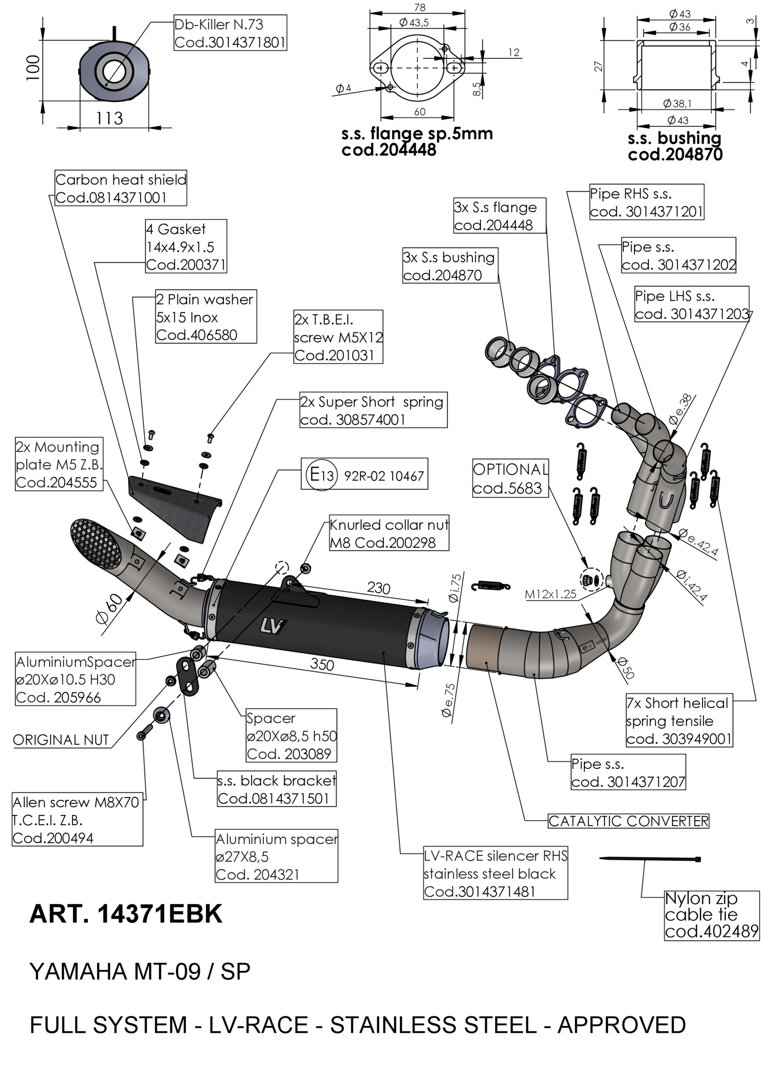We chose to make it with AISI 304 stainless steel to guarantee that your exhaust has the maximum resilience. The LV Race is then finished with a special matte black ceramic-based paint, that is high temperature resistant, to give your bike an amazing look.