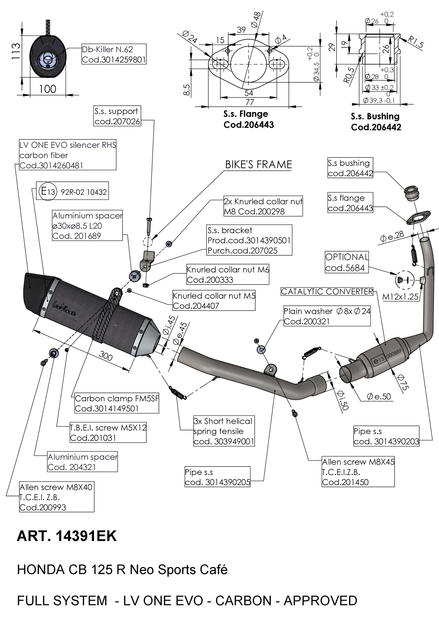 14391EK - Exhaust LeoVince LV ONE EVO Carbon HONDA CB 125 R (21-23)
