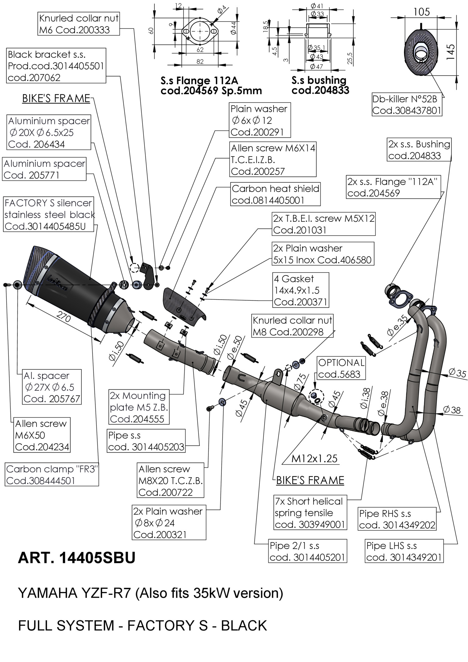 14405SBU - Full exhaust system LeoVince FACTORY S BLACK YAMAHA YZF-R7 (21-23)