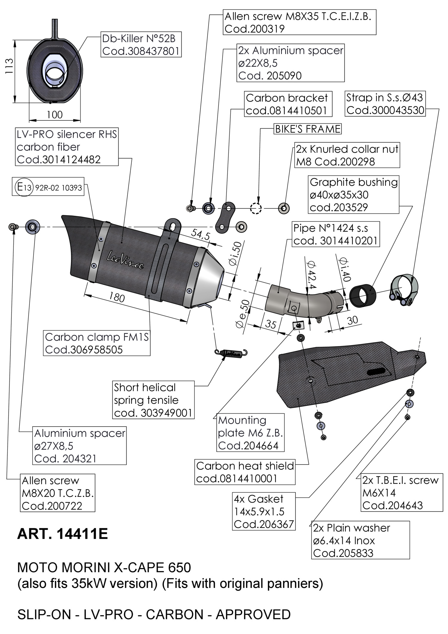 14411E Exhaust muffler LeoVince LV PRO Carbon MOTO MORINI X-CAPE 650/A2 (21-23)
