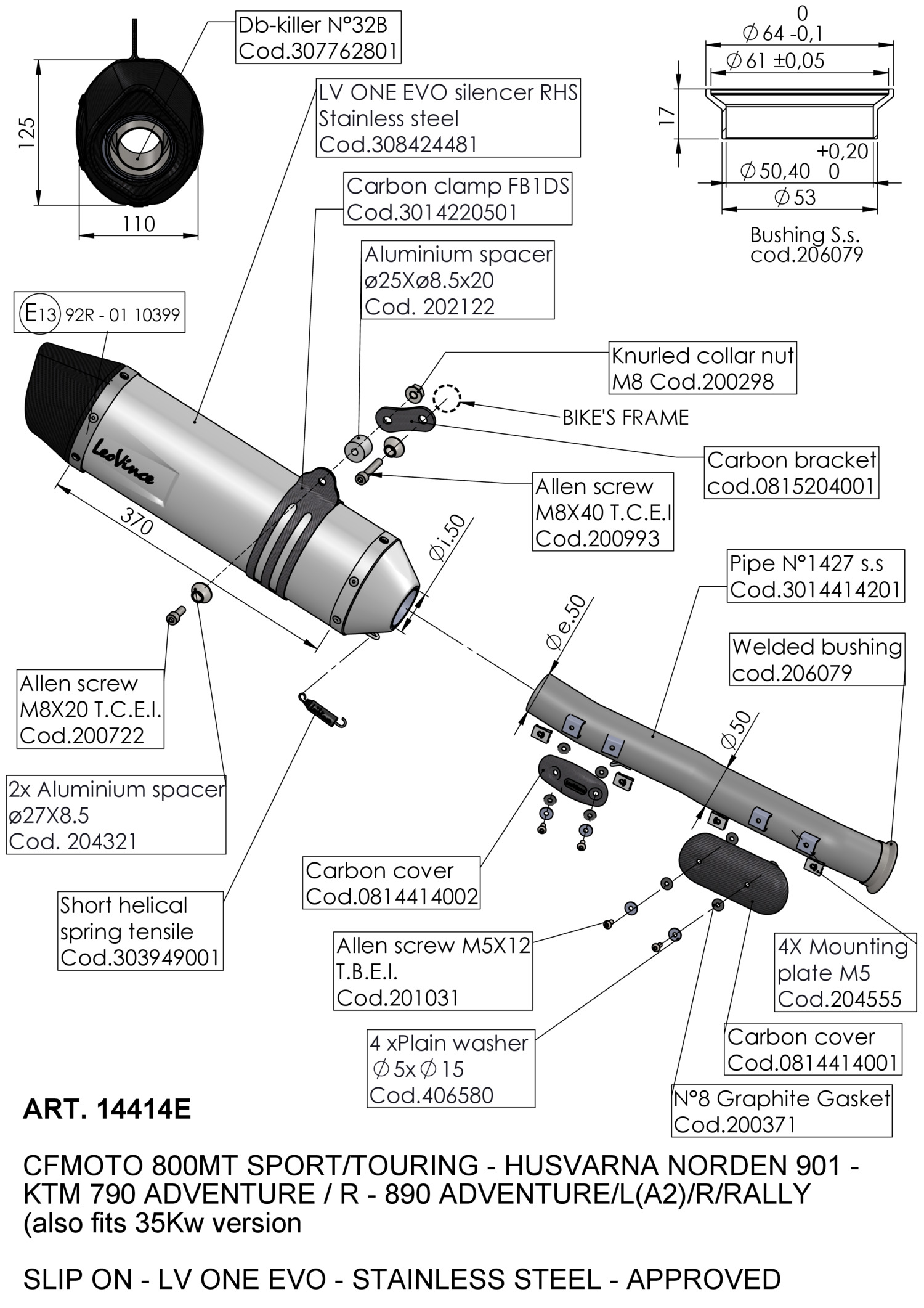 14414E - Exhaust muffler LeoVince LV ONE EVO SS CF MOTO 800 MT (22-23)