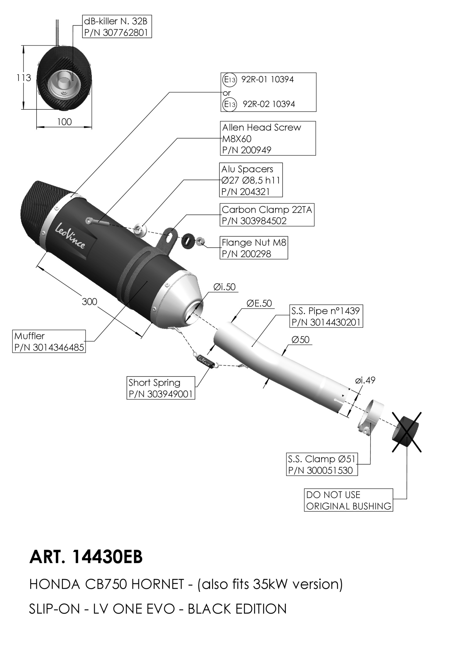 14430E - Exhaust muffler LeoVince LV ONE EVO SSHONDA CB 750 HORNET 2023 >Special Price €313.50 Regular Price €418.00 -25% -