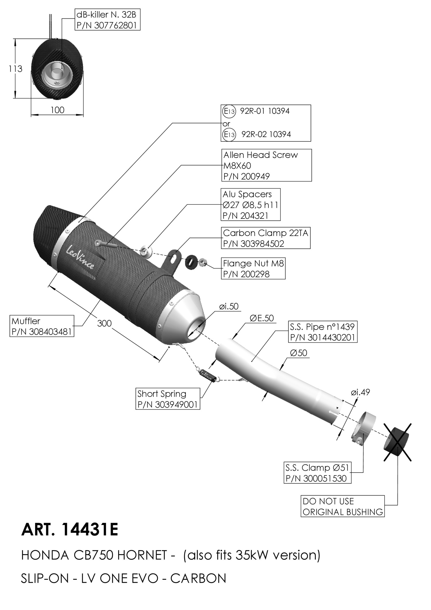 14430E - Exhaust muffler LeoVince LV ONE EVO SSHONDA CB 750 HORNET 2023 >Special Price €313.50 Regular Price €418.00 -25% -