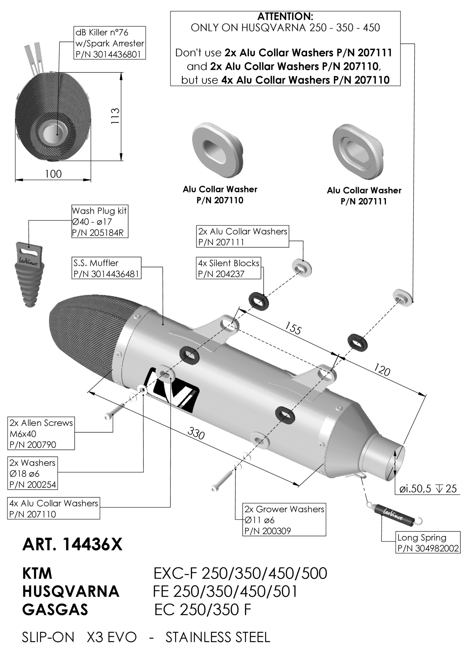 14436X - Exhaust muffler LeoVince X3 EVO SS HUSQVARNA FE 250 (20-23)