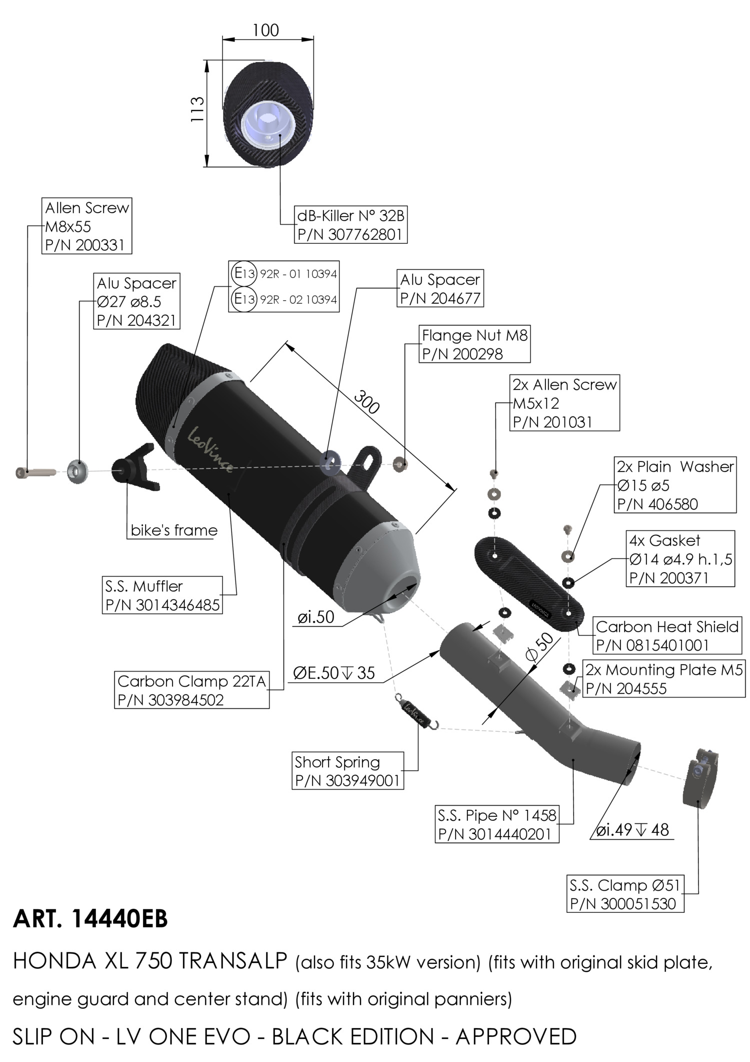 14440EBU - Exhaust muffler LeoVince LV ONE EVO BLACK HONDA XL 750 TRANSALPSpecial Price $418.68 Regular Price $558.24 -25% -