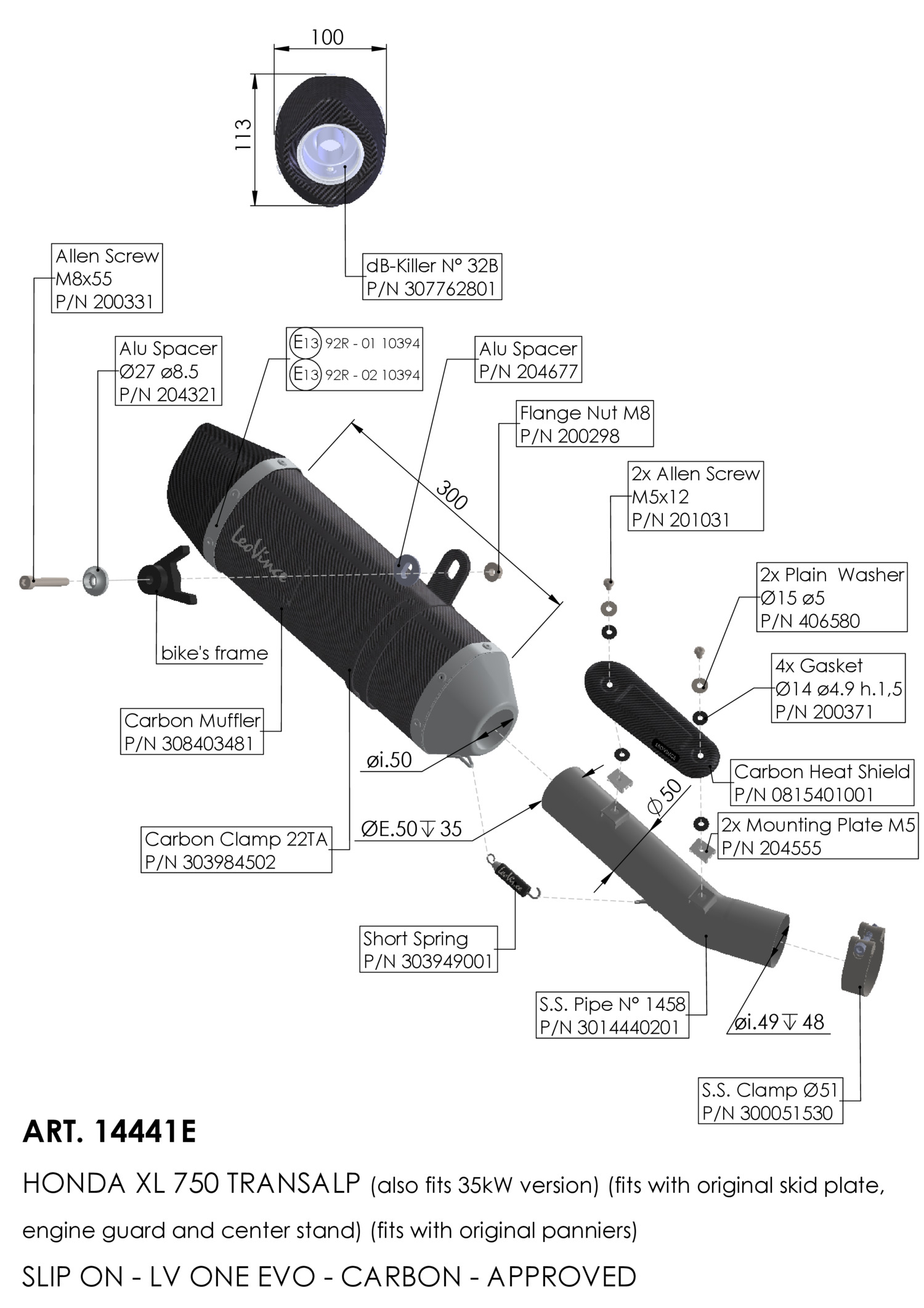 14441E - Exhaust muffler LeoVince LV ONE EVO Carbon HONDA XL 750 TRANSALP (23-)