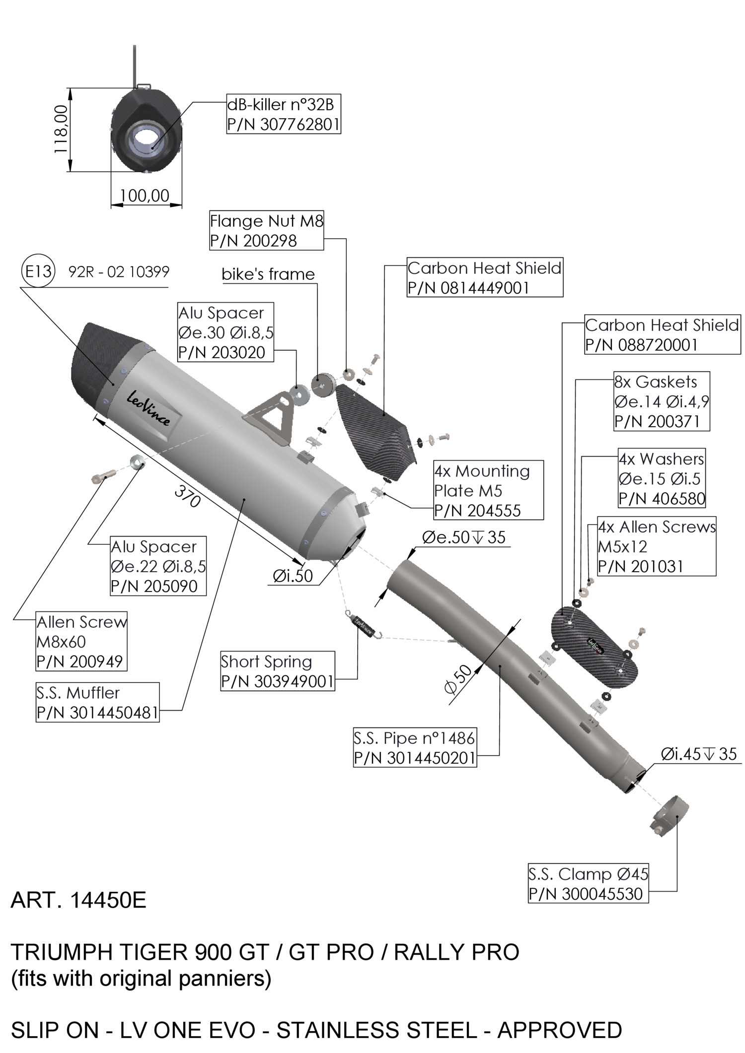 Exhaust muffler LeoVince LV ONE EVO Stainless steel TRIUMPH TIGER 900 GT / GT PRO / RALLY PRO (24-25)
