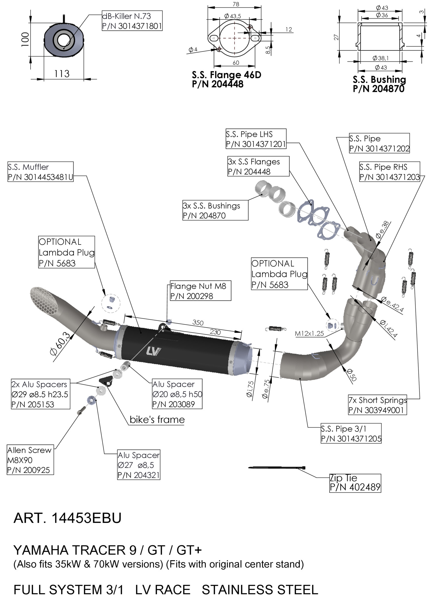 14453EBU - Exhaust LeoVince LV RACE Stainless steel YAMAHA TRACER 9 2025