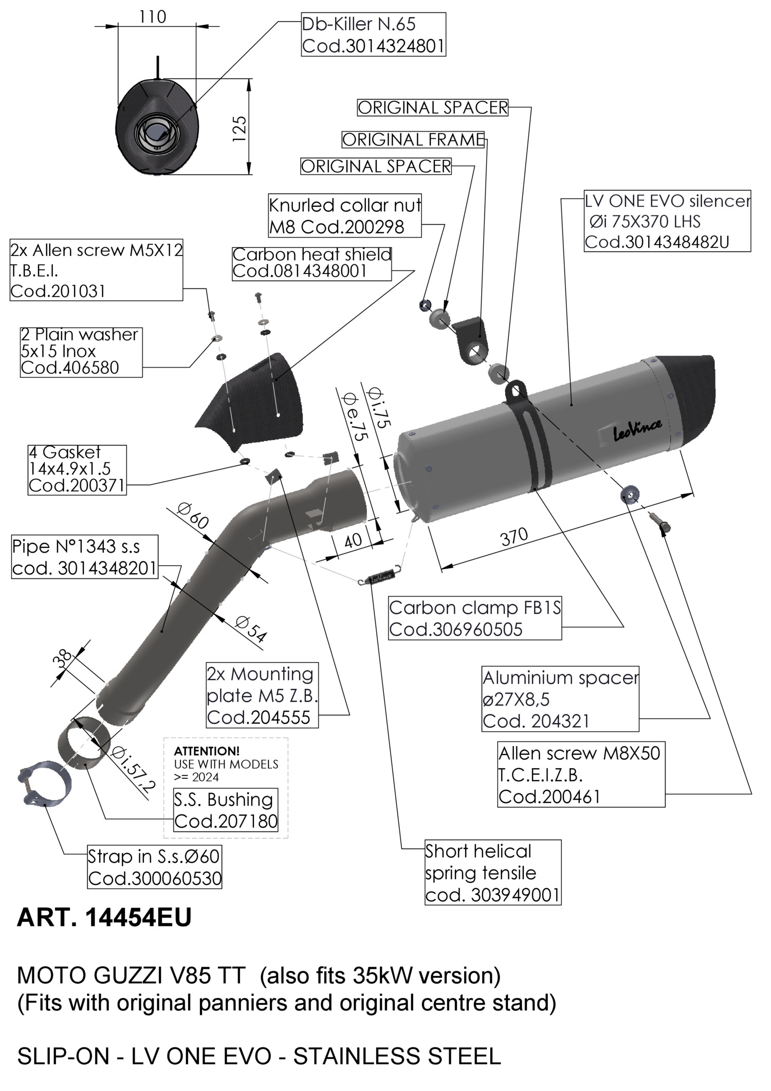 14454EU - Exhaust muffler LeoVince LV ONE EVO MOTO GUZZI V85 TT (19-23)