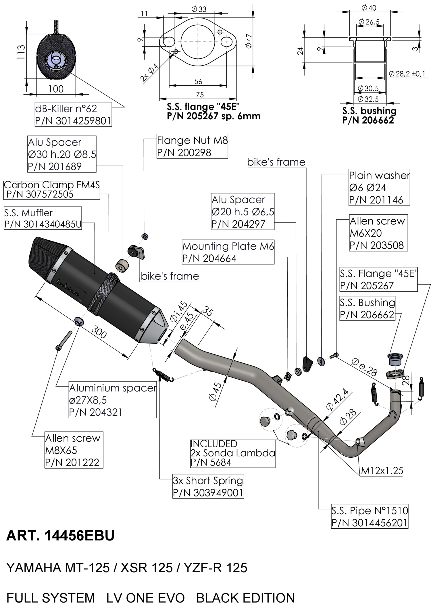14456EBU - Exhaust LeoVince LV ONE EVO BLACK YAMAHA MT-125 2025