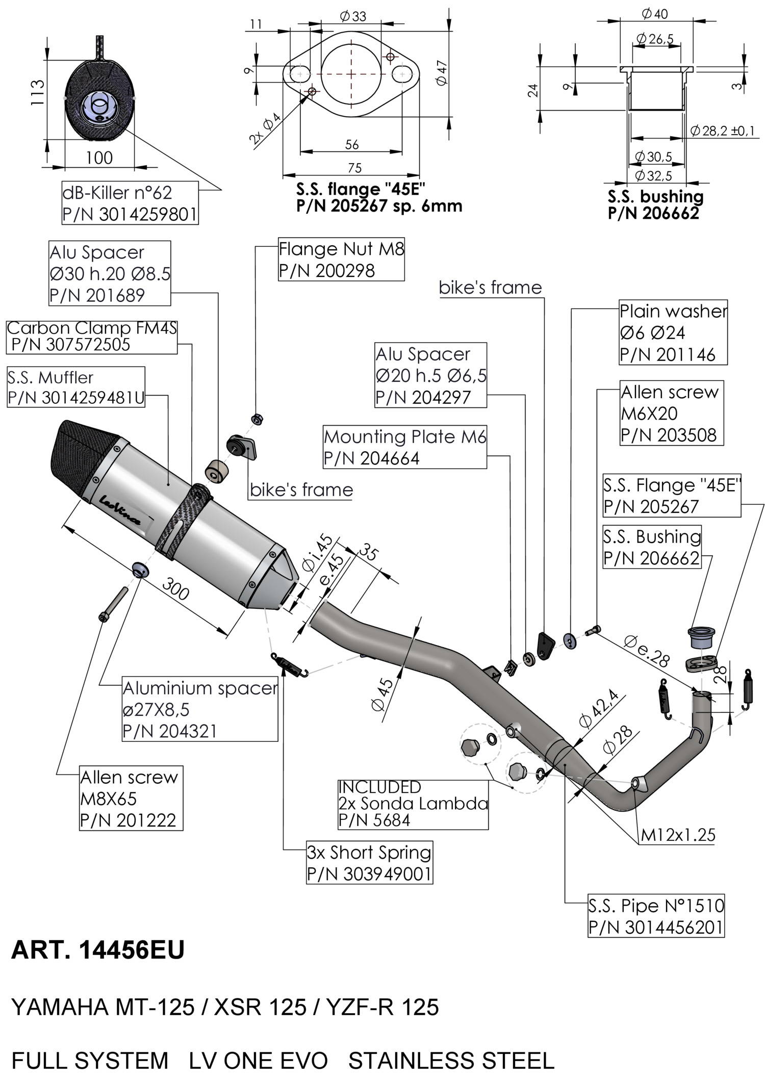 14456EU - Exhaust LeoVince LV ONE EVO Stainless steel YAMAHA MT-125 2025