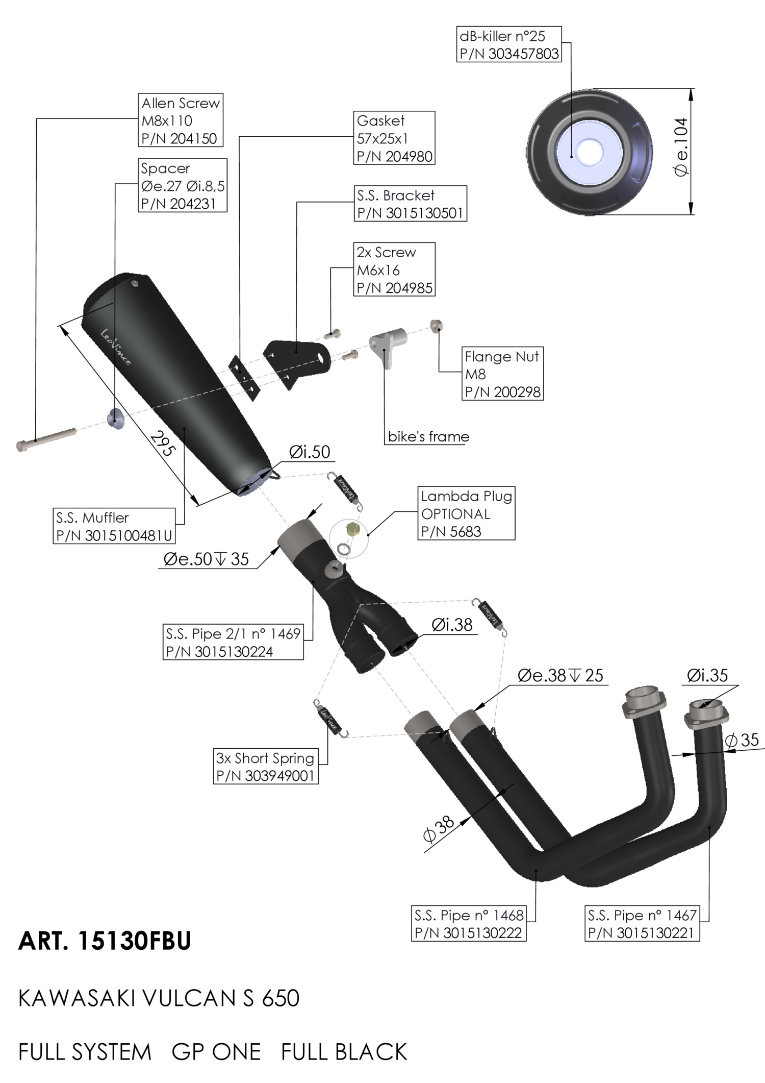 15130FBU - Full exhaust system LeoVince GP ONE KAWASAKI VULCAN S 650 (17-20)