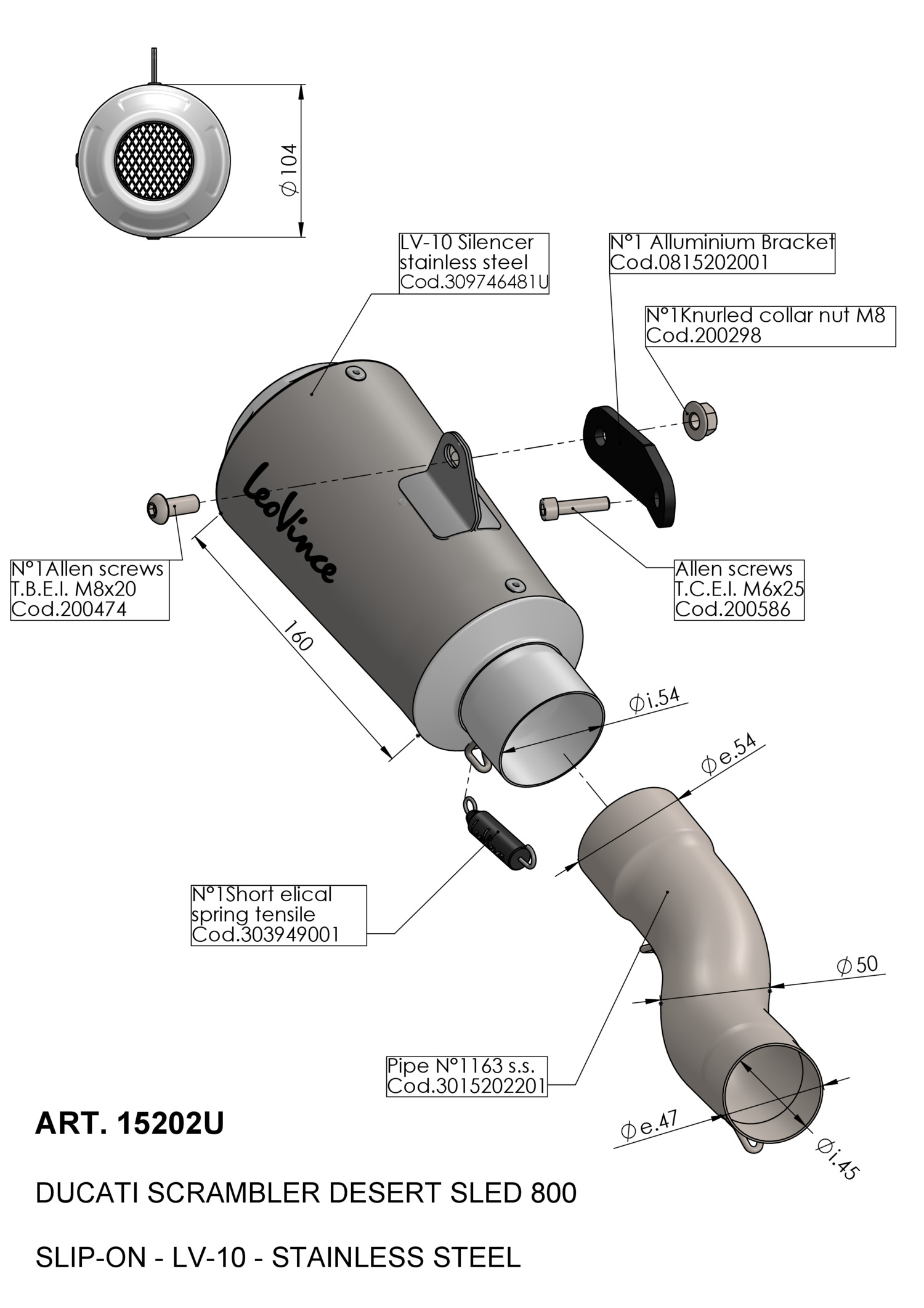 15202U - Exhaust muffler LeoVince LV-10 Inox DUCATI SCRAMBLER 800 (17-20)