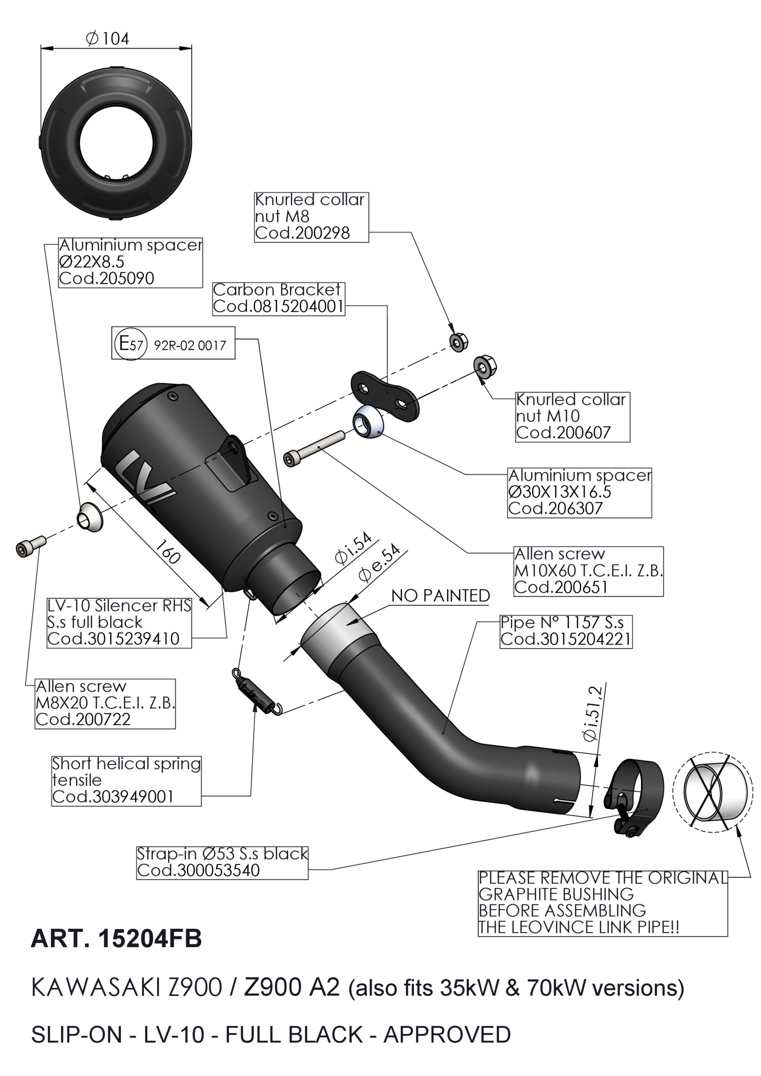 15204FBL - Exhaust muffler LeoVince LV-10 FULL BL WCLE KAWASAKI Z 900 A2 (18-24)