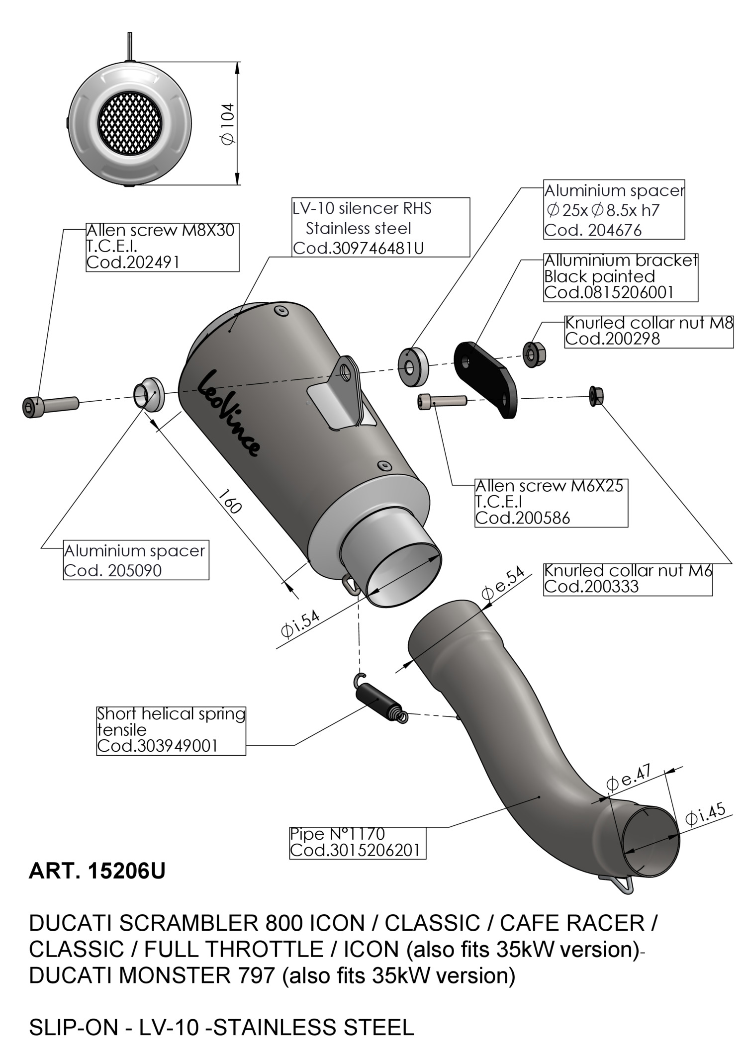 15206U - Exhaust muffler LeoVince LV-10 SS DUCATI SCRAMBLER 800 (15-16)
