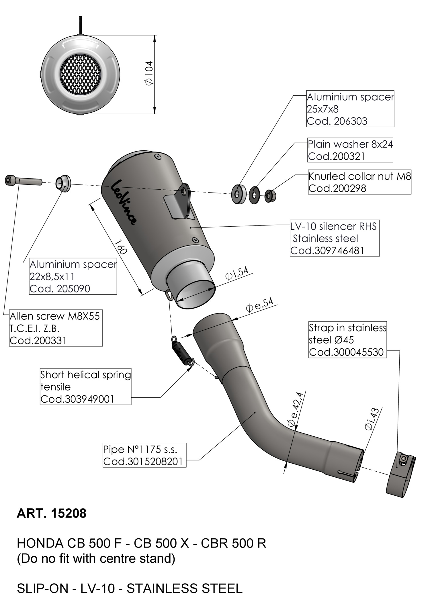 15208 - Exhaust muffler LeoVince LV-10 Stainless steel HONDA CB 500 F (16-18)