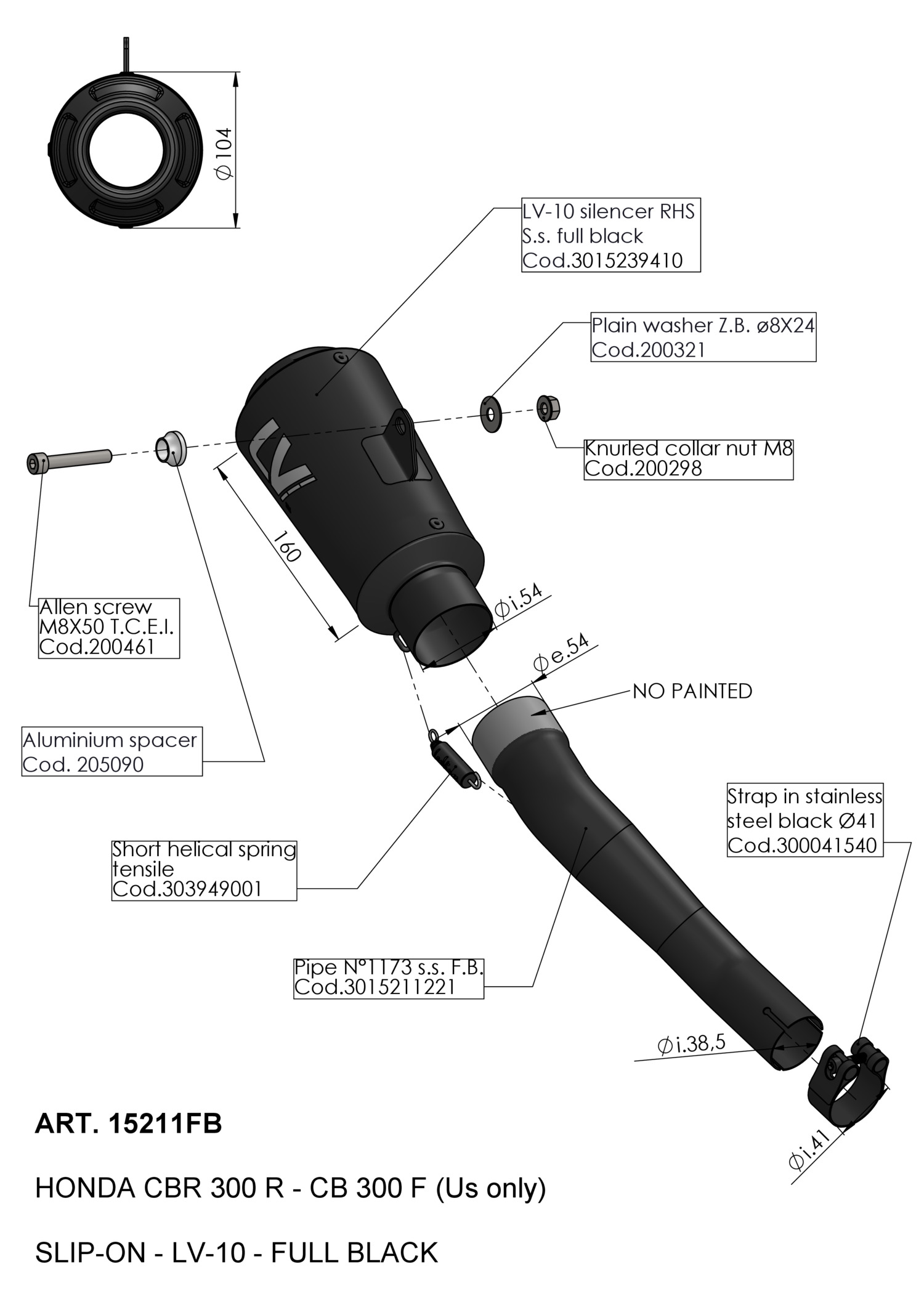 The body, inlet and end-cap are coated with a special matte black paint that enhances the shape, giving it an extremely aggressive look and giving you the best resistance to high temperatures and scratches.