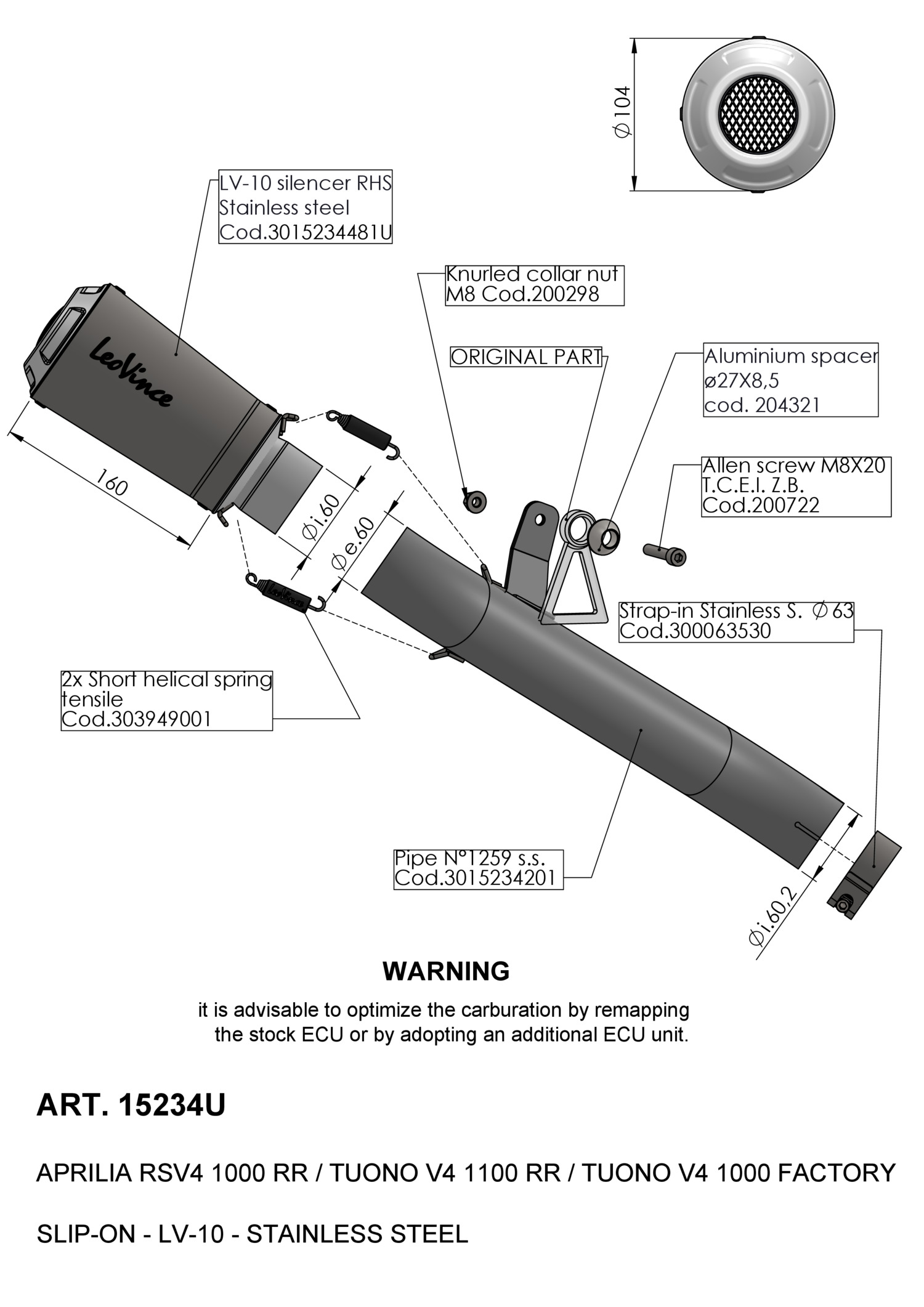 15234U - Exhaust muffler LeoVince LV-10 SS APRILIA RSV4 1000 RR (19-20)